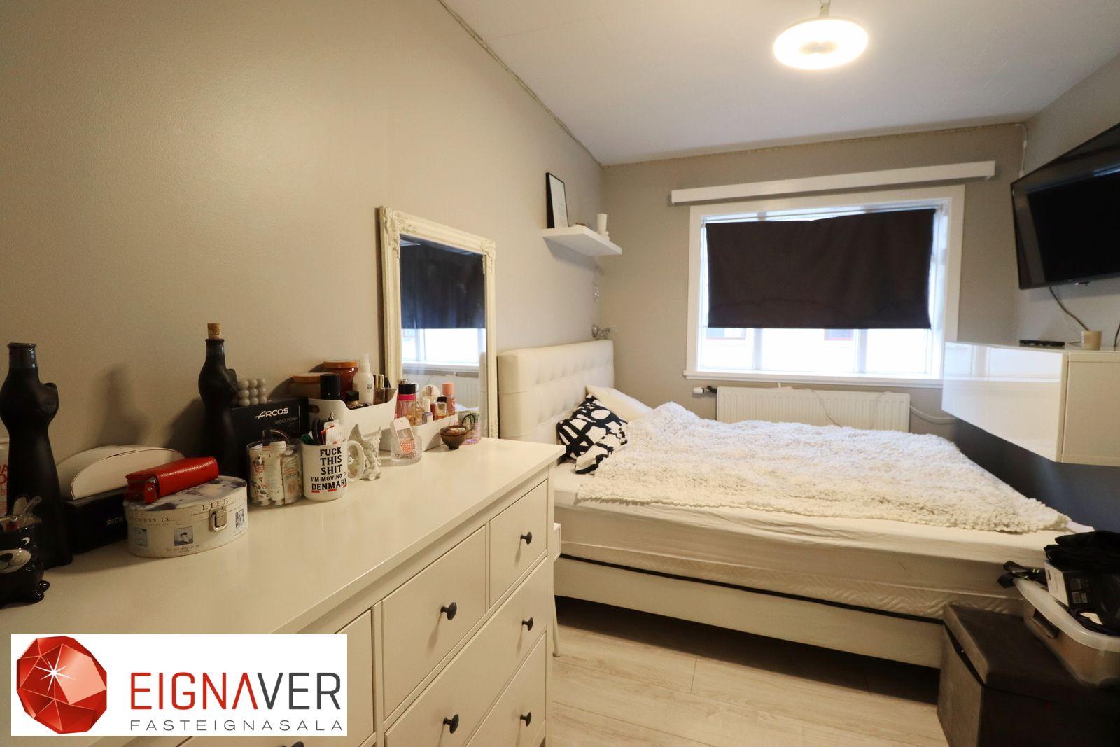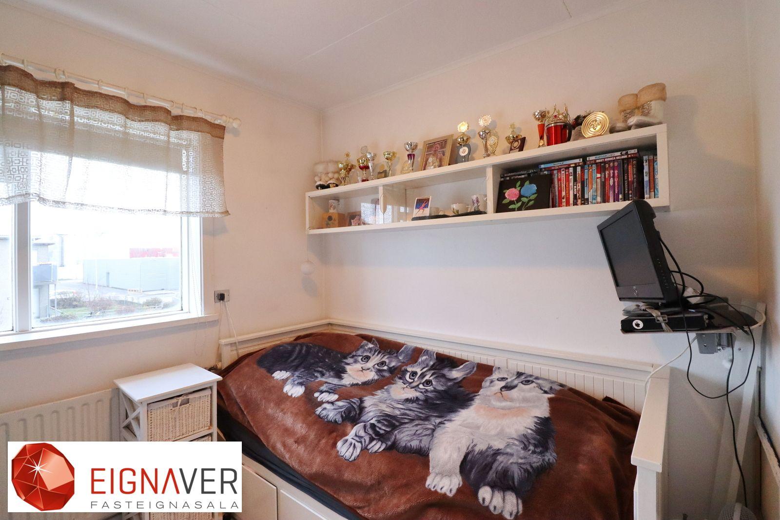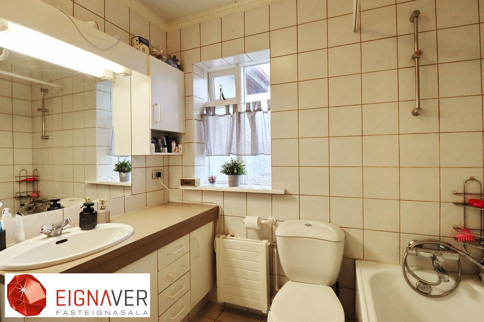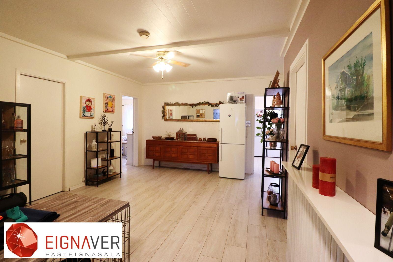 Nánari lýsing: Forstofa með flísum á gólfi, góð köld geymsla, þar er jafnframt gengið inn í sameiginlegt þvottahús ( sem eigendur íbúðar eru ekki að nota í dag ) og sameiginlega geymslu. Stigi upp er flísalagður og mjög rúmgóður.gengið upp flísalagðan stiga. Á efri palli er pláss fyrir yfirhafnir. Útgengt út á svalir af efri palli. Þvottahús á hæð með dúk á gólfi, gluggi, mjög góð innrétting, vélar í vinnuhæð. Hol er rúmgott og bjart, parket á gólfi. Úr holi er gengið inn í öll rými eignarinnar. Eldhús parket á gólfi, góð innrétting, Góð borðstofa tengir saman eldhús og stofu. Gott skápapláss er í borðstofu. Stofa með parketi á gólfi gluggar til suðurs og vesturs. Björt og rúmgóð stofa. Baðherbergi með flísum á gólfi, gluggi til austurs,baðkar, fín innrétting. Svefnherbergi eru þrjú, öll með parketi á gólfi, góðir skápar í hjónaherbergi.