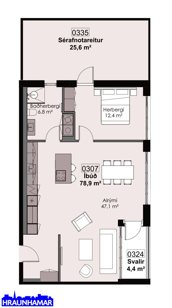 Helgi s. 893-2233, Hlynur s. 698-2603, Vala s. 791-7500, Glódís s. 659-0510, Einar s. 888-7979. Eða sendið tölvupóst á sala@hraunhamar.is Íbúð 307 er 2ja herbergja og er skáð 87,6 fm. þar af 8,7 fm geymsla.Einstakt útsýni