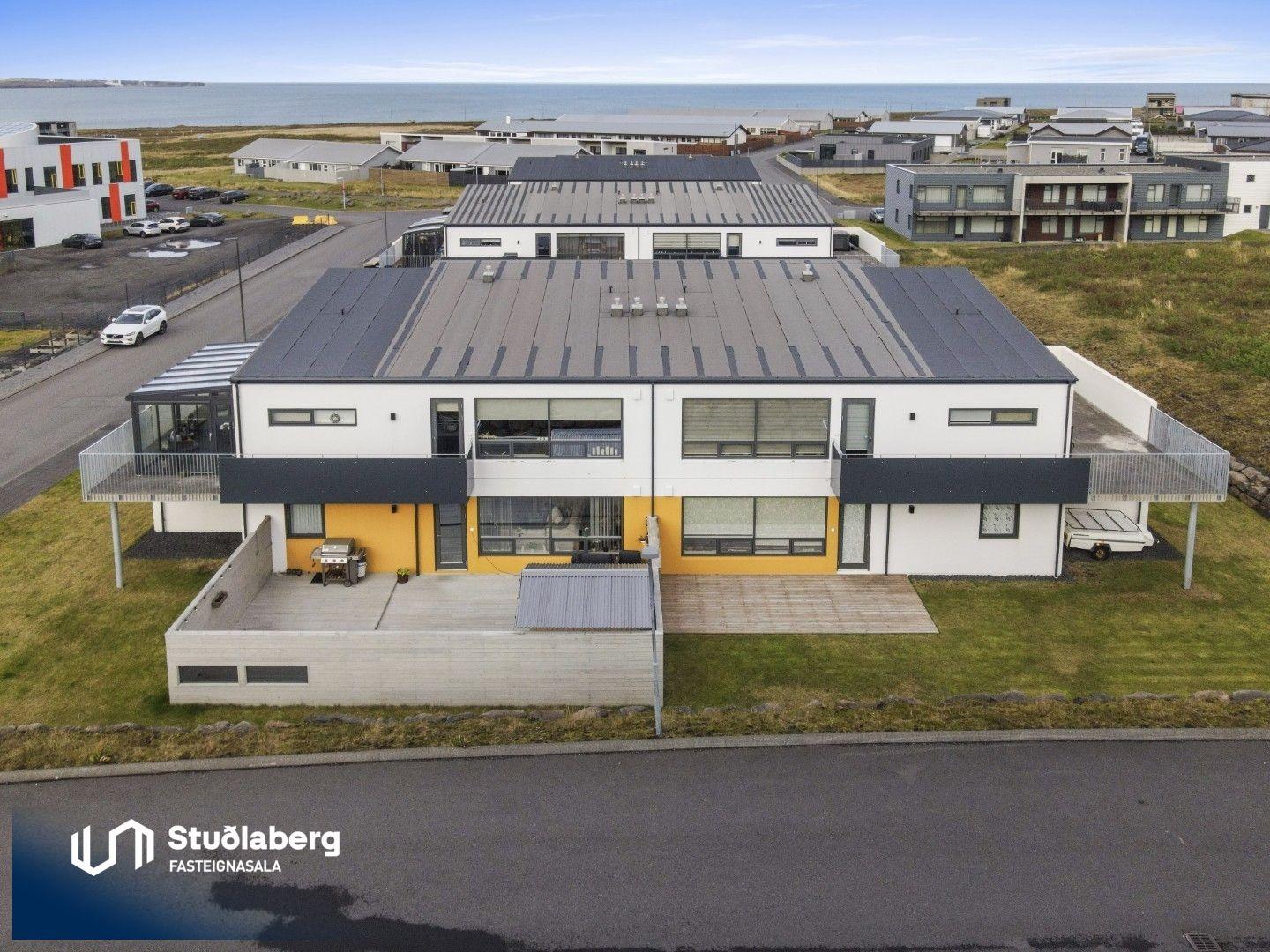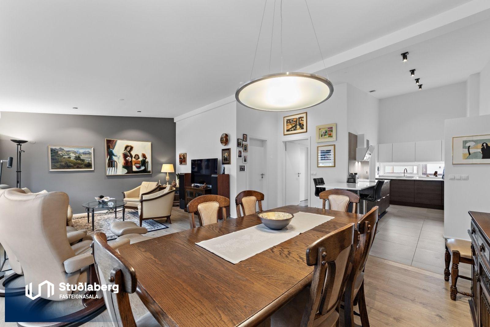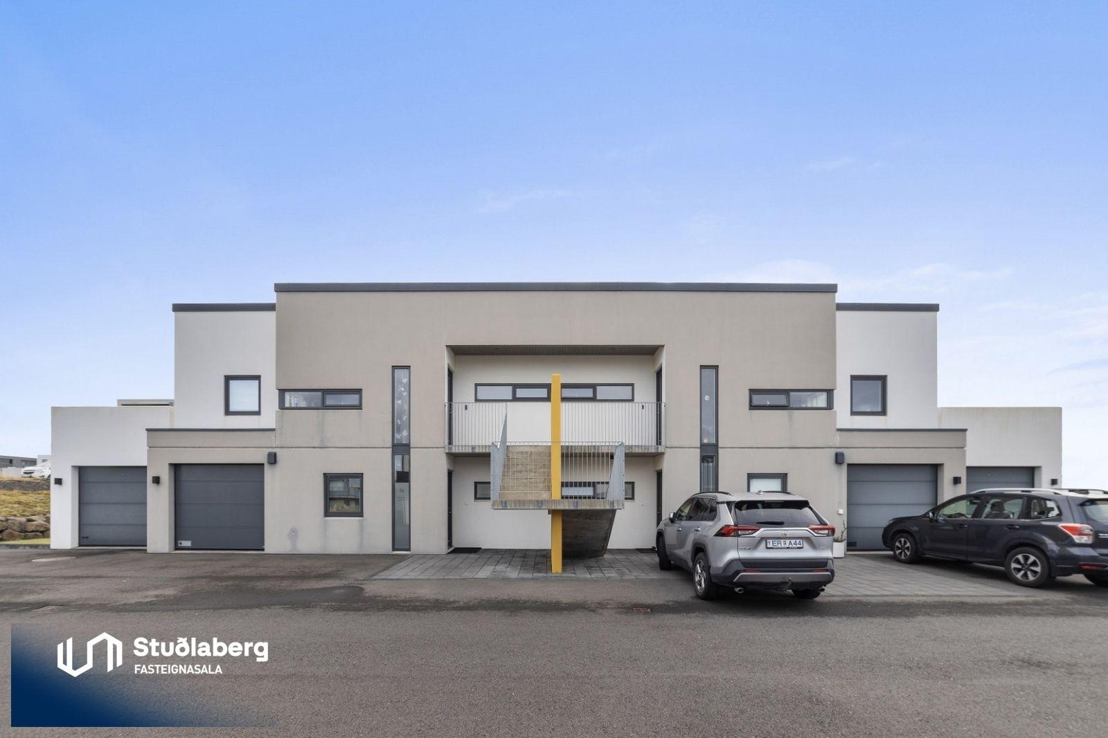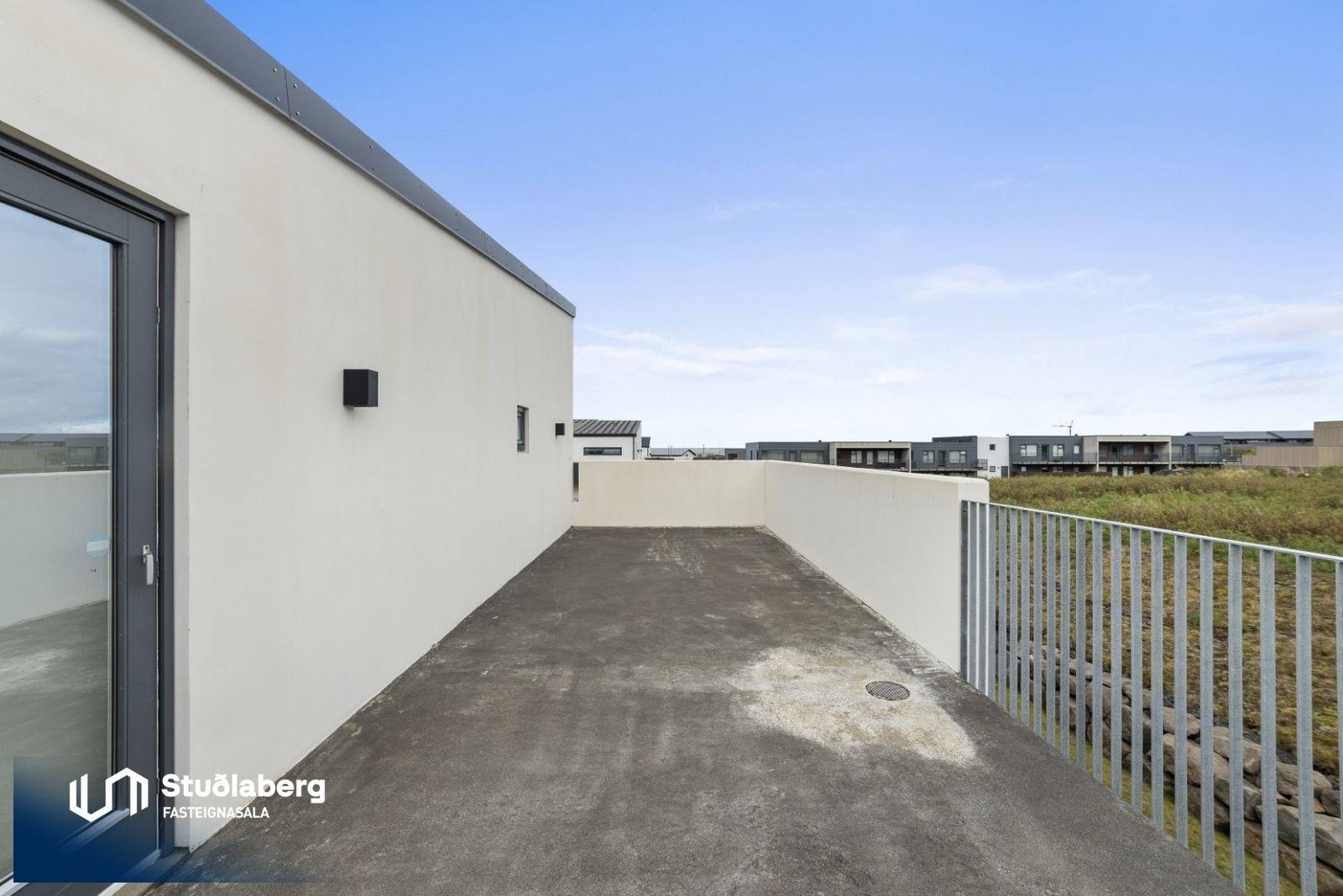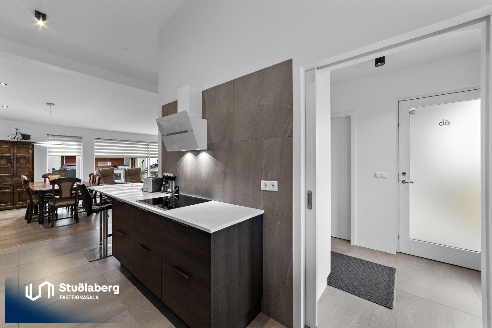 Helstu kostir: Lúxus innréttingar: Þýskar innréttingar frá Nobila, innbyggður ísskápur með frysti ásamt uppþvottavél. Falleg lýsing er frá Lumex. Tvö baðherbergi: Bæði eru með gólfhita og hágæða hreinlætistækjum. Stórar svalir: 40fm svalir. Bílskúr snyrtilegur með hurðaropnara. Vönduð gólfefni: Ítalskar flísar á votrýmum og harðparket frá Parka á stofu og svefnherbergjum. Frábær staðsetning: Íbúðin er aðeins 20 mínútur frá höfuðborgarsvæðinu og steinsnar frá Stapaskóla.