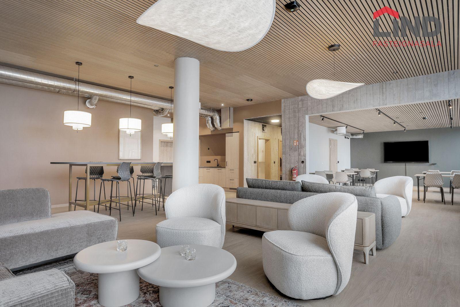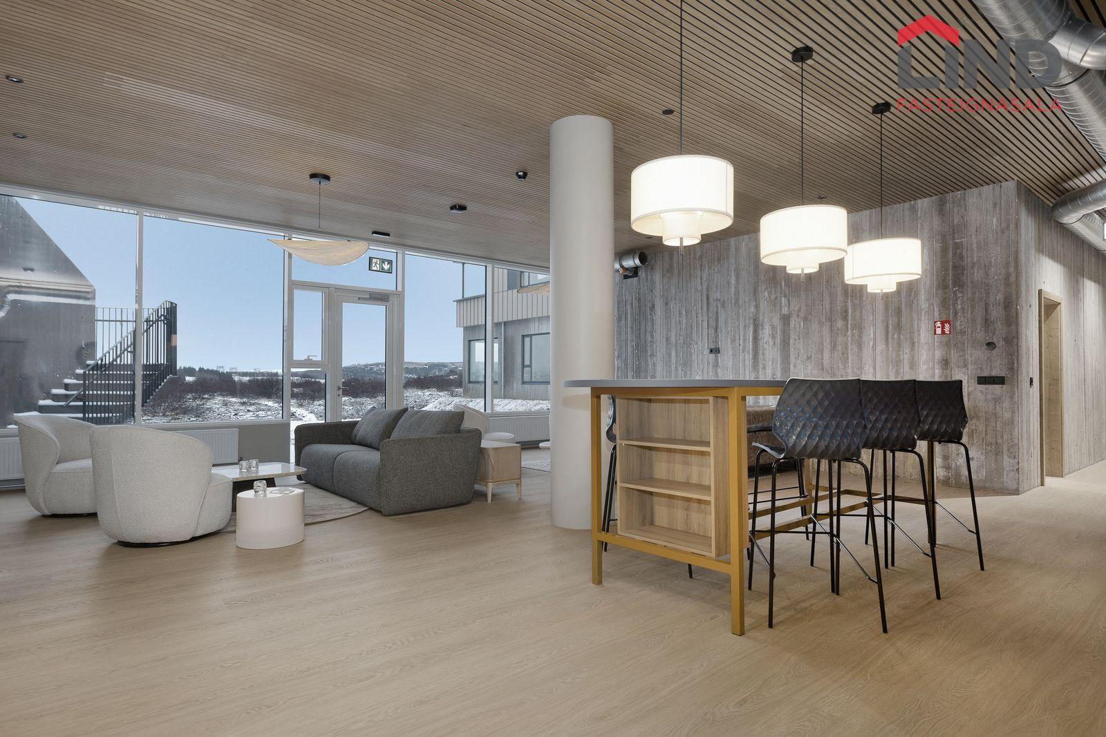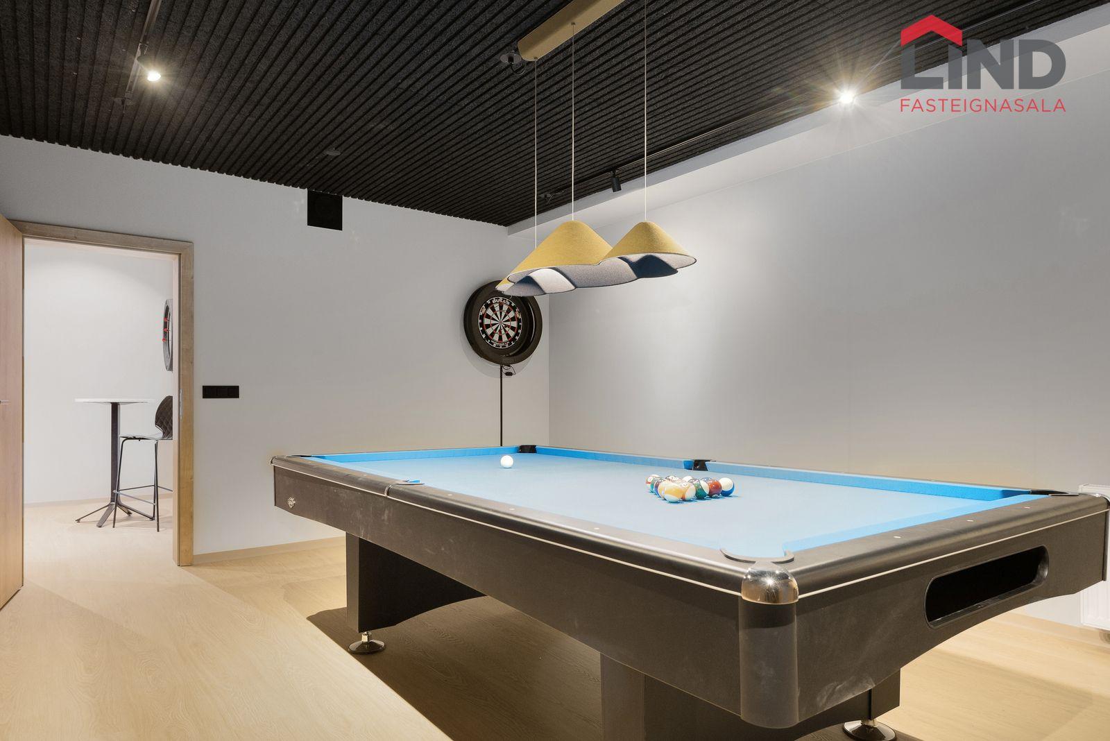 Glæsileg sameign (miðrými) eru í húsunum með útsýni að Heiðmörk. Miðrýmið skilast fullbúið með tveimur golfhermum, billiard aðstöðu, æfingasal og hlýlegri setustofu sem er hentug fyrir afslöppun, fundi eða óformlega samveru. Einnig verður eldhúsinnrétting, borð og stólar fyrir veislur, spilakvöld eða öðru líkt þar sem notalegt andrúmsloft ræður ríkjum. Auk þess er þvottaaðstaða fyrir bifreiðar í bílakjallara fyrir íbúa.