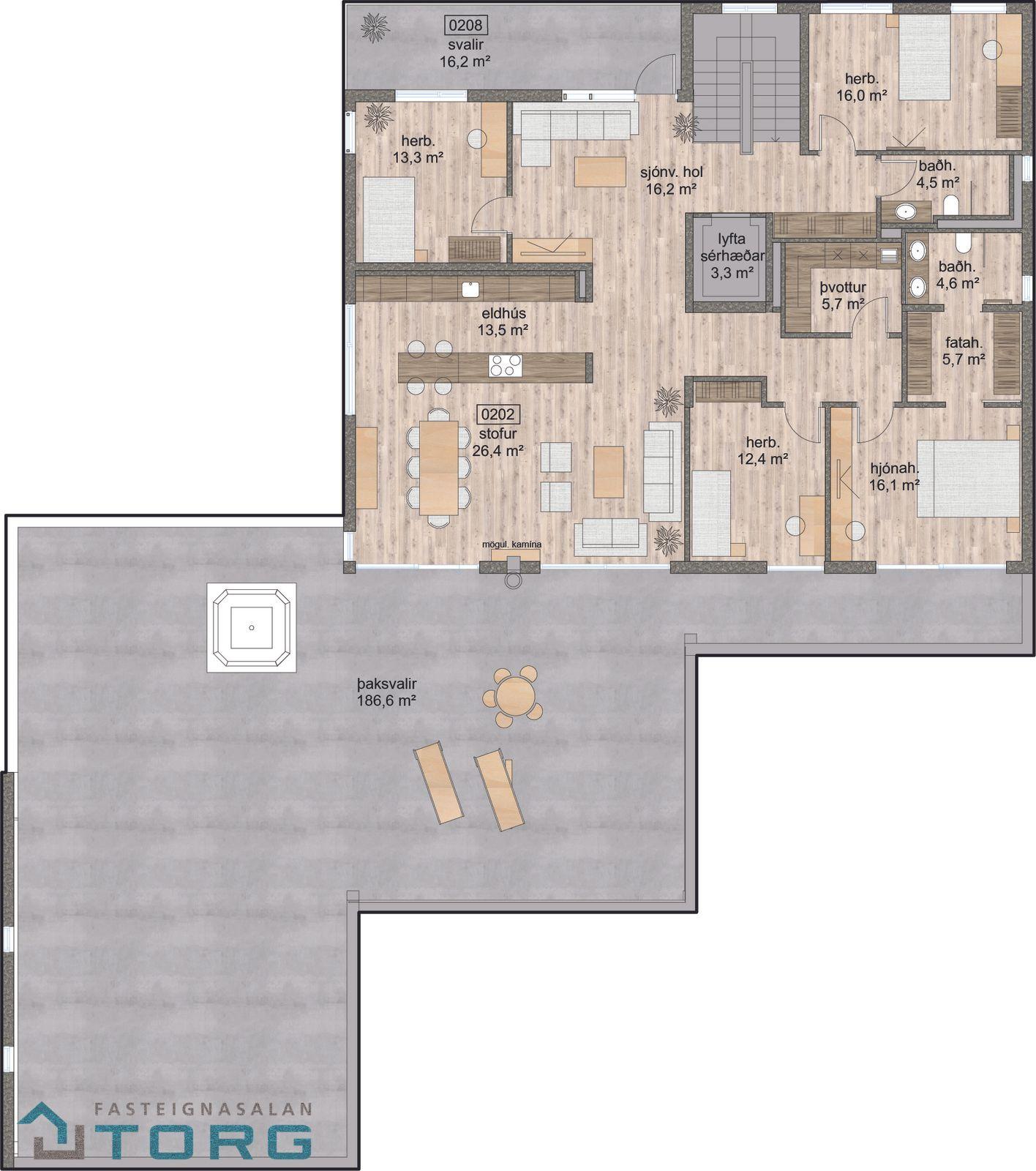 Áætlað er að íbúðir við Fossvogsveg verði afhentar í febrúar 2026. Traustur byggingaraðili Byggingarfélag Gylfa og Gunnars hf. Sjá nánar inn á meðfylgjandi söluvef Heimasíða Glæsileg og vel skipulögð 5 herbergja penthouse sérhæð, merkt 0202 í fallegu nýju álklæddu lyftuhúsi.