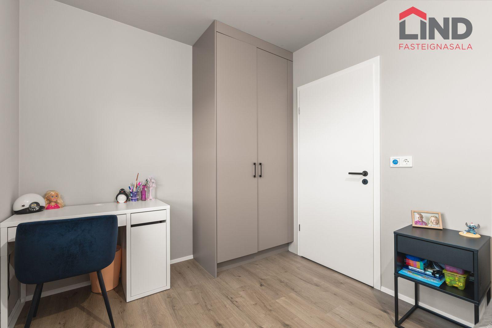 Svefnherbergi 2: með Kahrs parket á gólfi og fataskáp.