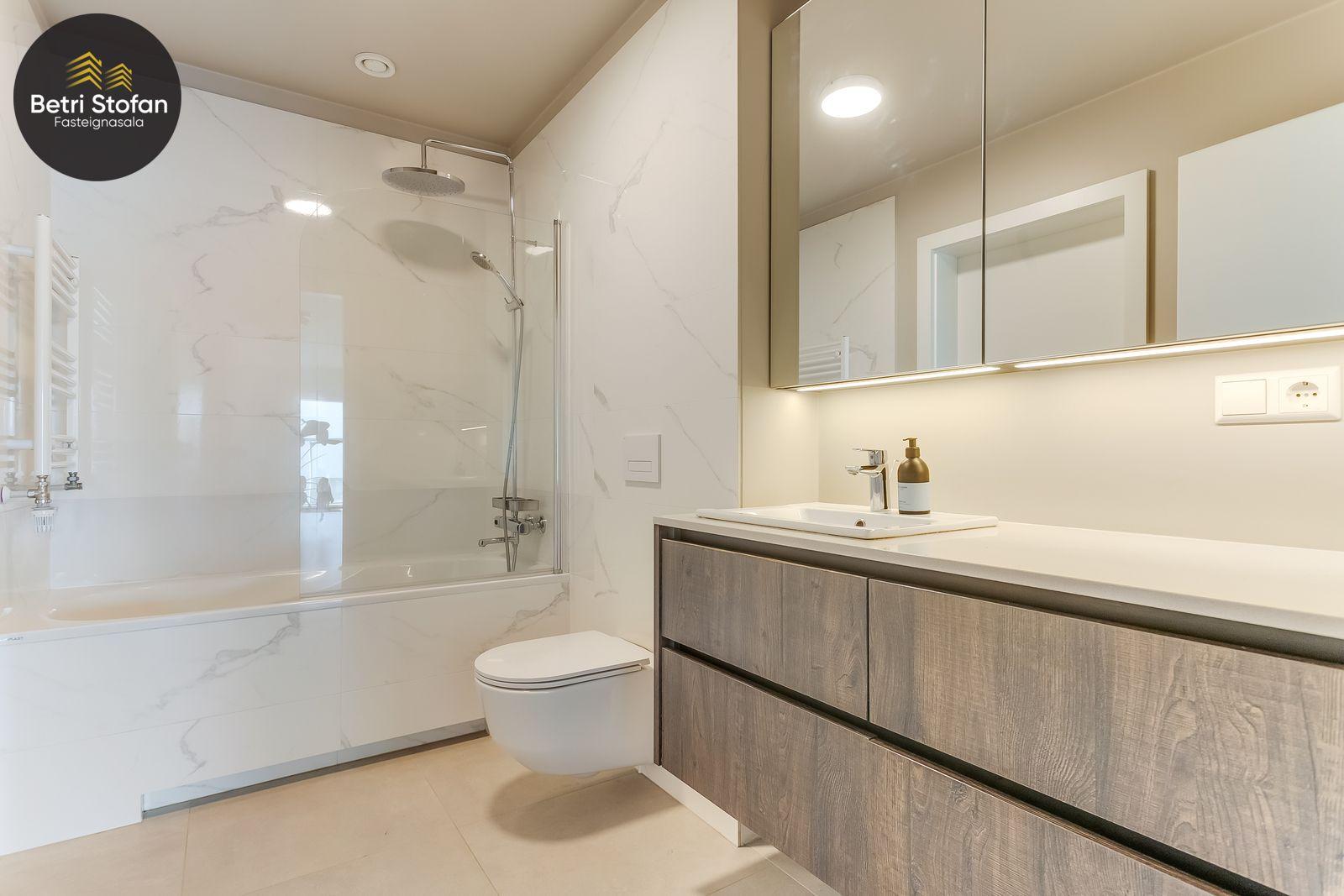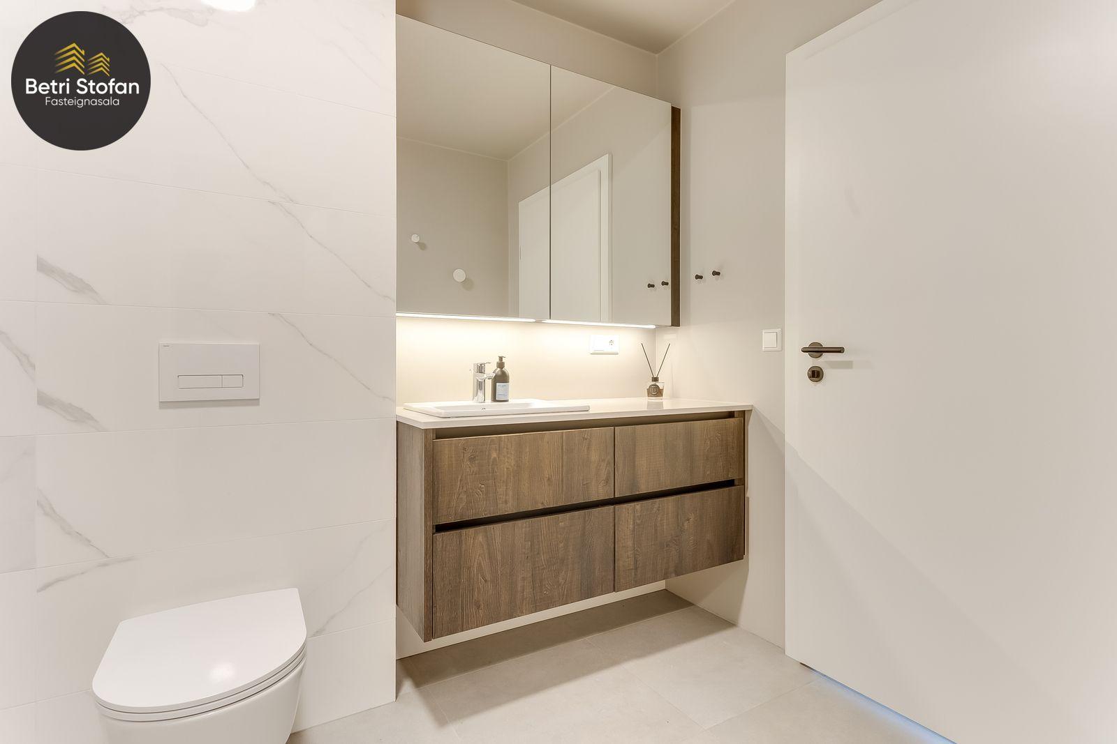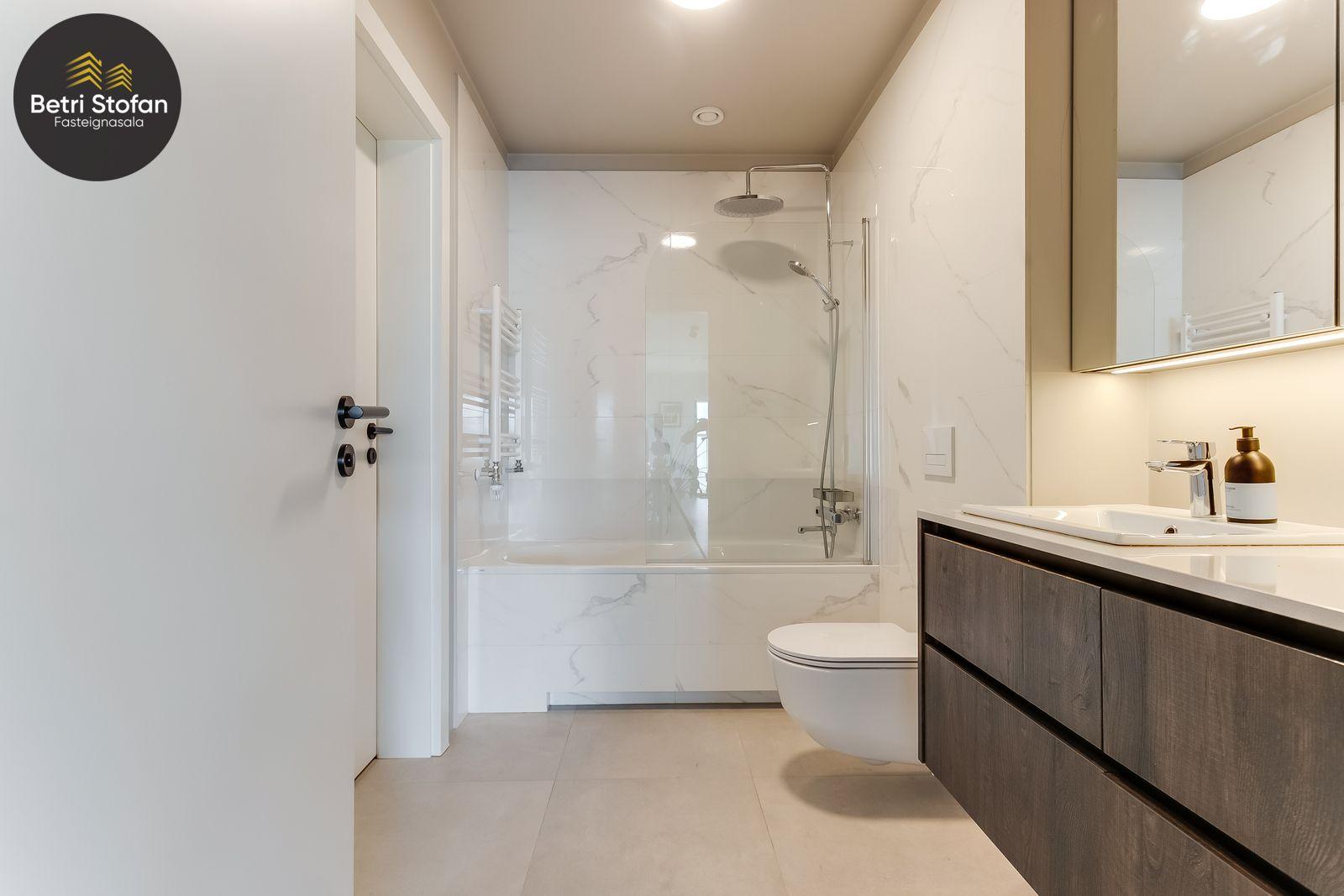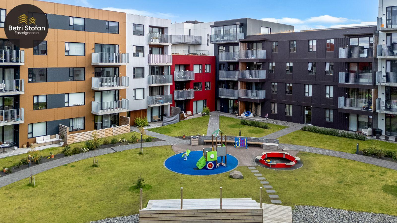 Íbúðinni fylgir stæði í bílakjallara (nálægt inngangi í lyftu) og 15,3 fm sérgeymsla með mikilli lofthæð í sameign.