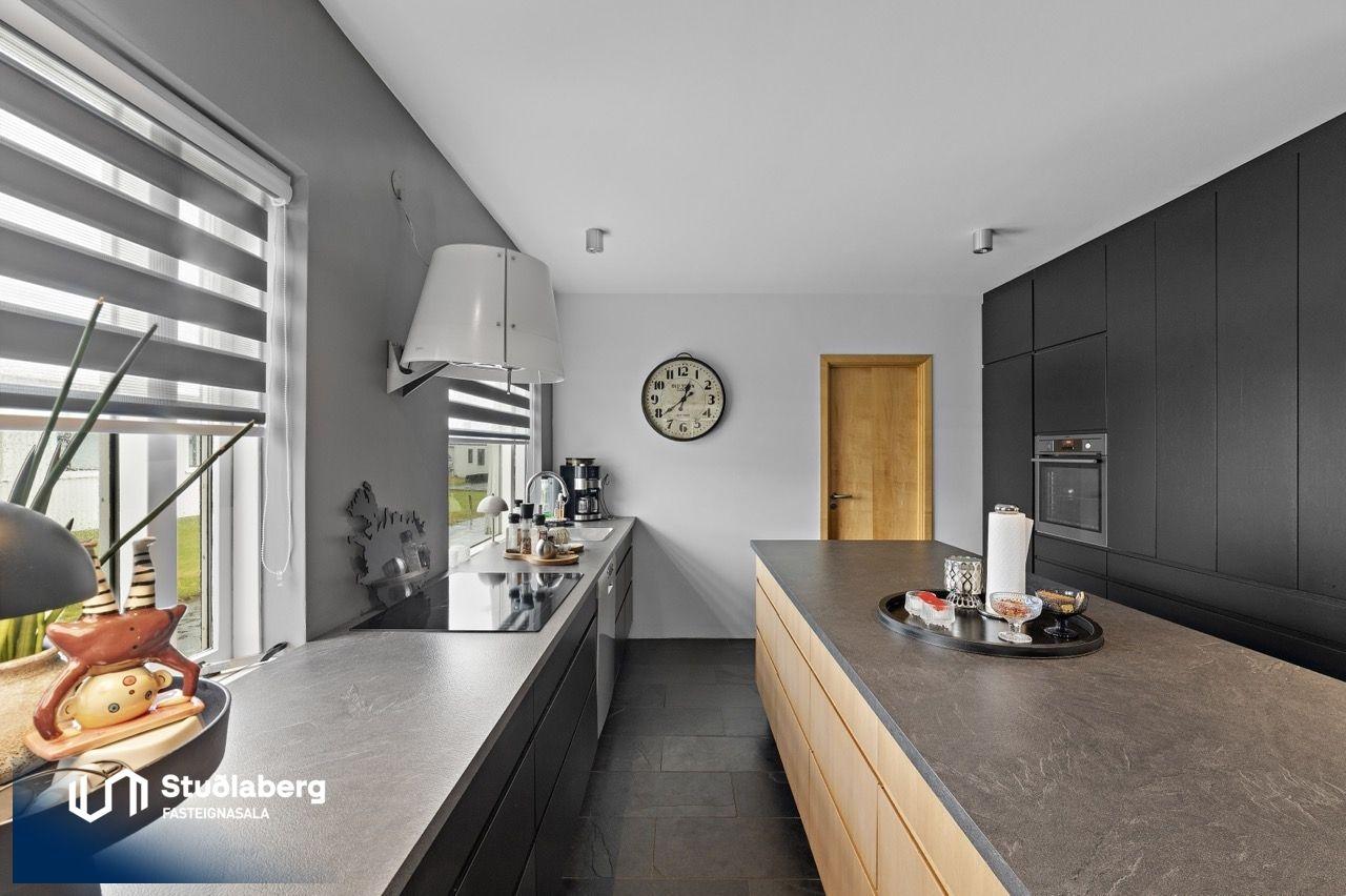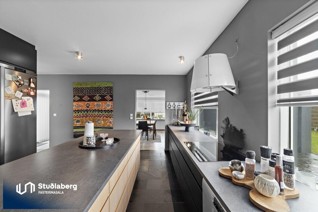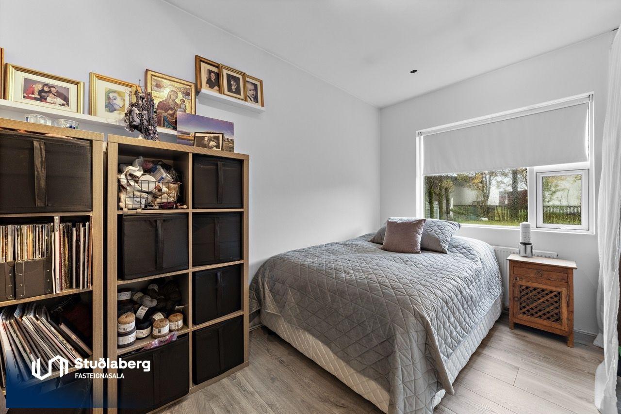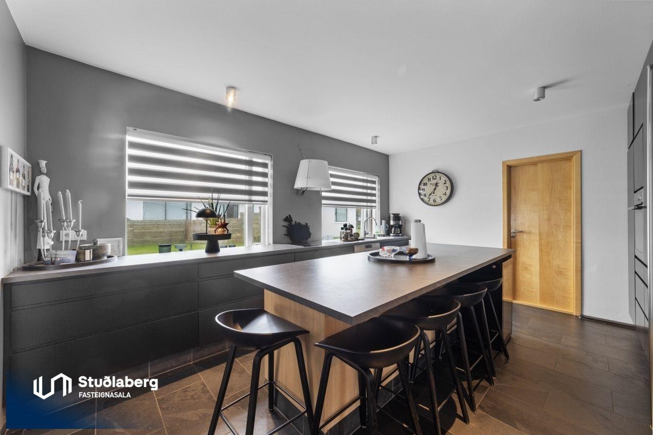 Forstofan hefur flísar á gólfum, þar er fataskápur. Þvottarhús hefur epoxy á gólfi og frábæra innréttingu þar sem gert er ráð fyrir þvottavél og þurrkara í vinnuhæð. Eldhús hefur flísar á gólfi, þar er glæsileg innrétting með stórri eldhúseyju. Stofan hefur parket á gólfi, þar er hurð út á sólpall sem snýr í suð-vestur. Baðherbergi hefur verið endurnýjað með flísumá gólfi og veggjum, þar er "walk in" sturta og upphengt salerni. Herbergin eru fjögur og hafa þau öll parket á gólfum.