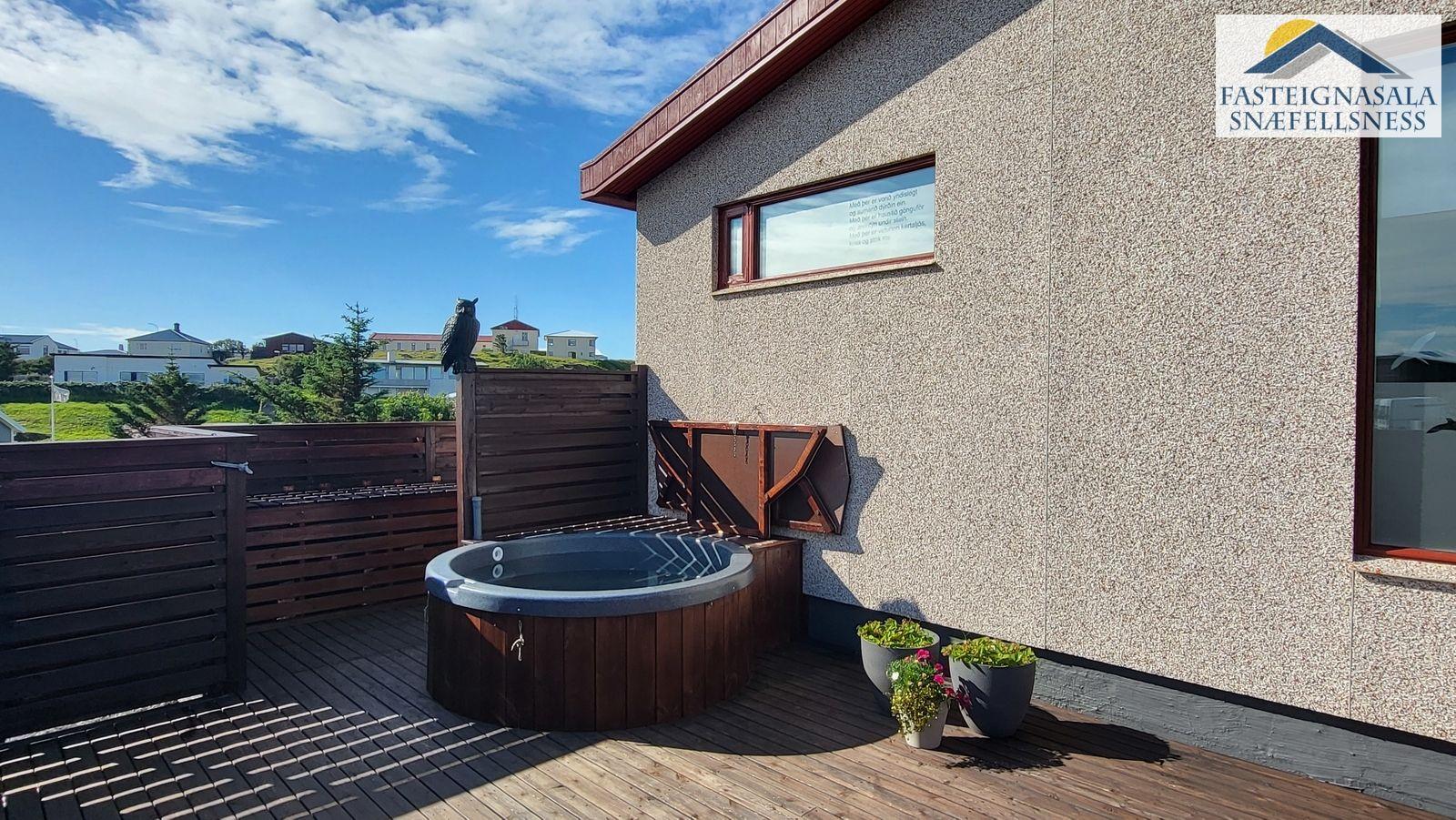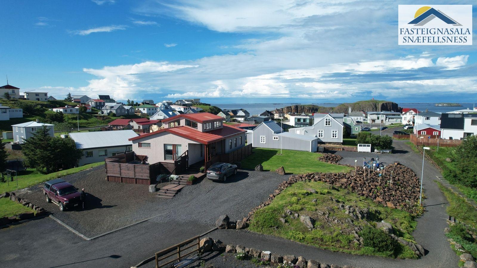 Húsið stendur hátt og frá því er gott útsyni til allra átta. Þá er húsið miðsvæðis í bænum og í göngufæri við alla helstu þjónustu.