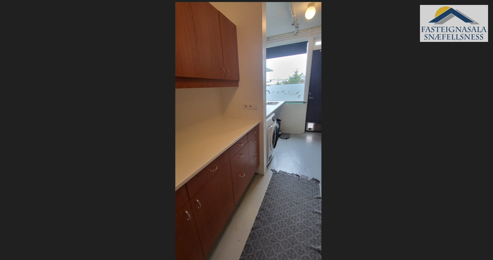 Flísar eru á forstofu, málað steingólf á þvottahús, dúkur á baðherbergi en parket á öðrum gólfum.