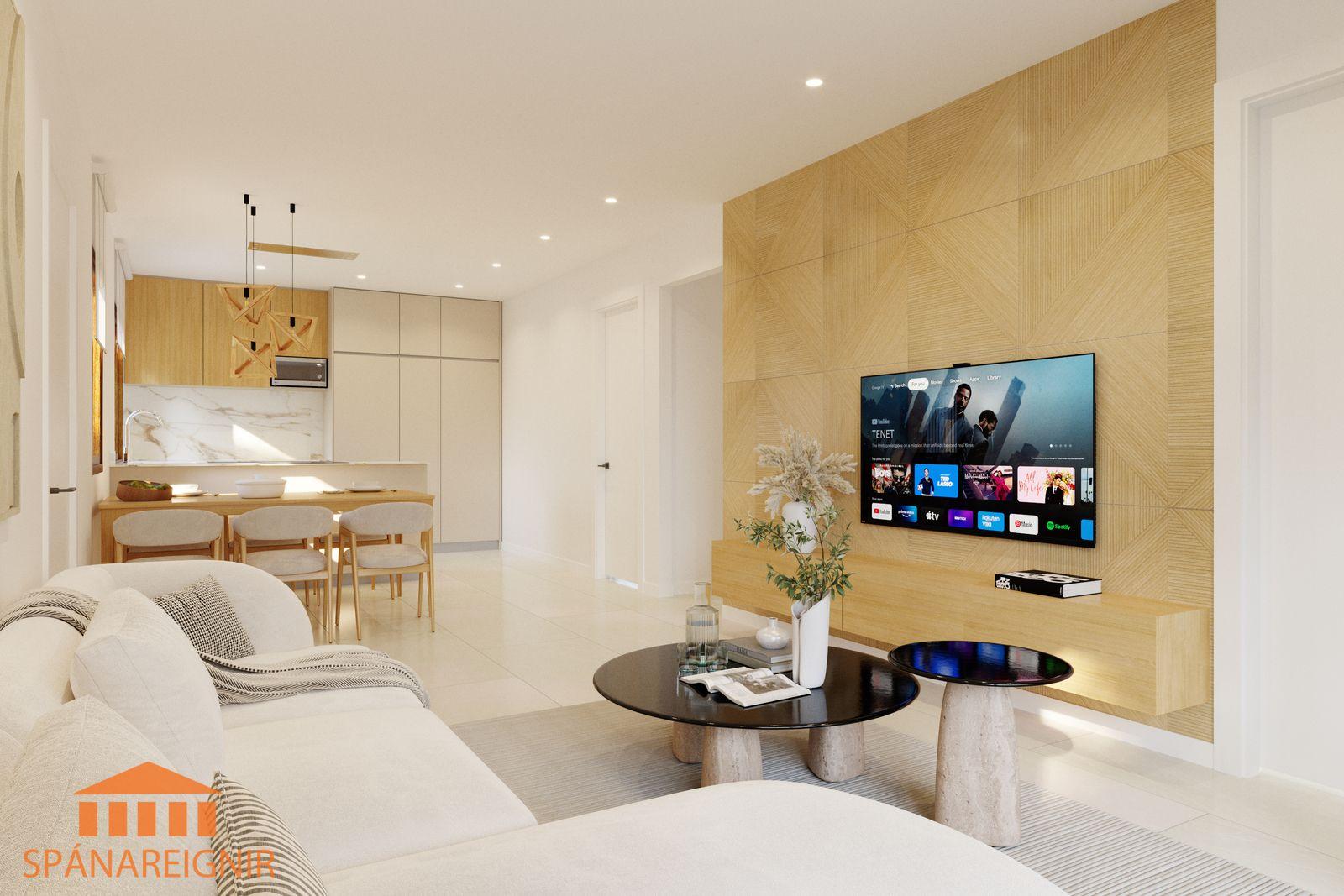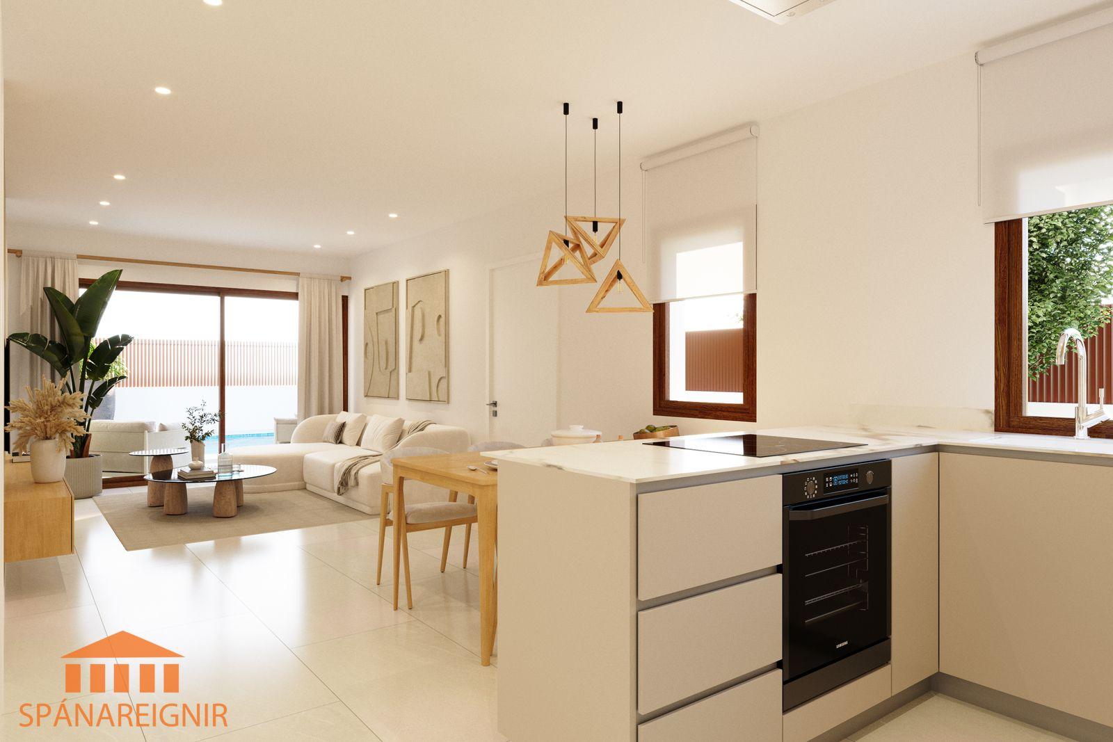 Nánari lýsing:Komið er inn í opið rými þar sem er stofa, borðstofa og eldhús í opnu rými . Tvö svefnherbergi og tvö baðherbergi. Útgengi út á verönd og einkagarð með sér sundlaug.