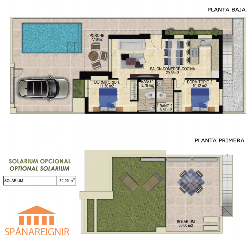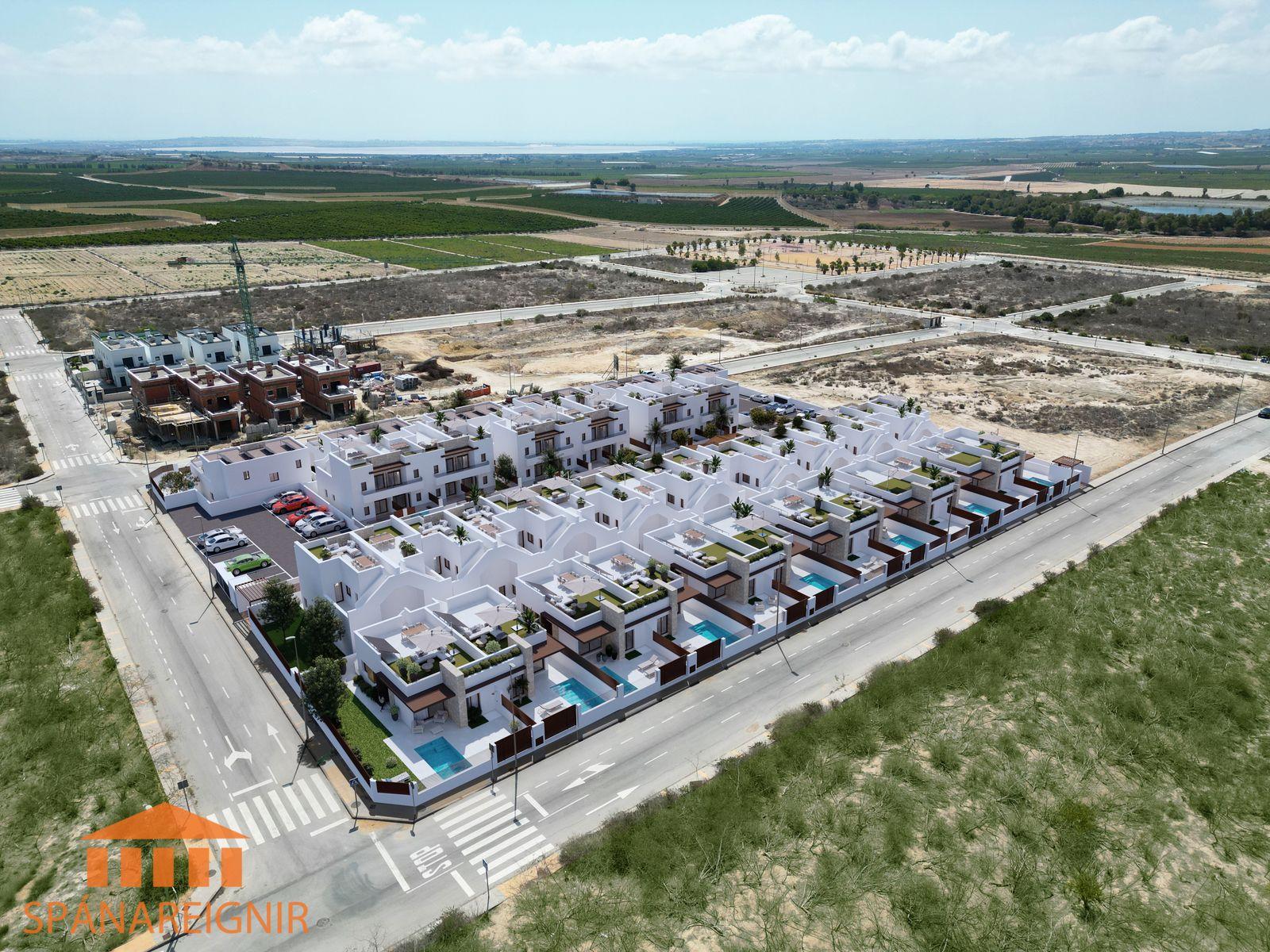 Falleg, rúmgóð og vel hönnuð parhús með lokuðum garði verönd út frá stofu og sér sundlaug á góðum stað á hinum vinsæla Vistabella golfvelli, um 50 mín akstur suður af Alicante. Tvö svefnherbergi, tvö baðherbergi, góð stofa, borðstofa og rúmgott eldhús. Verönd út frá stofu og auk þess möguleiki á rúmgóðum þaksvölum með frábæru útsýni.