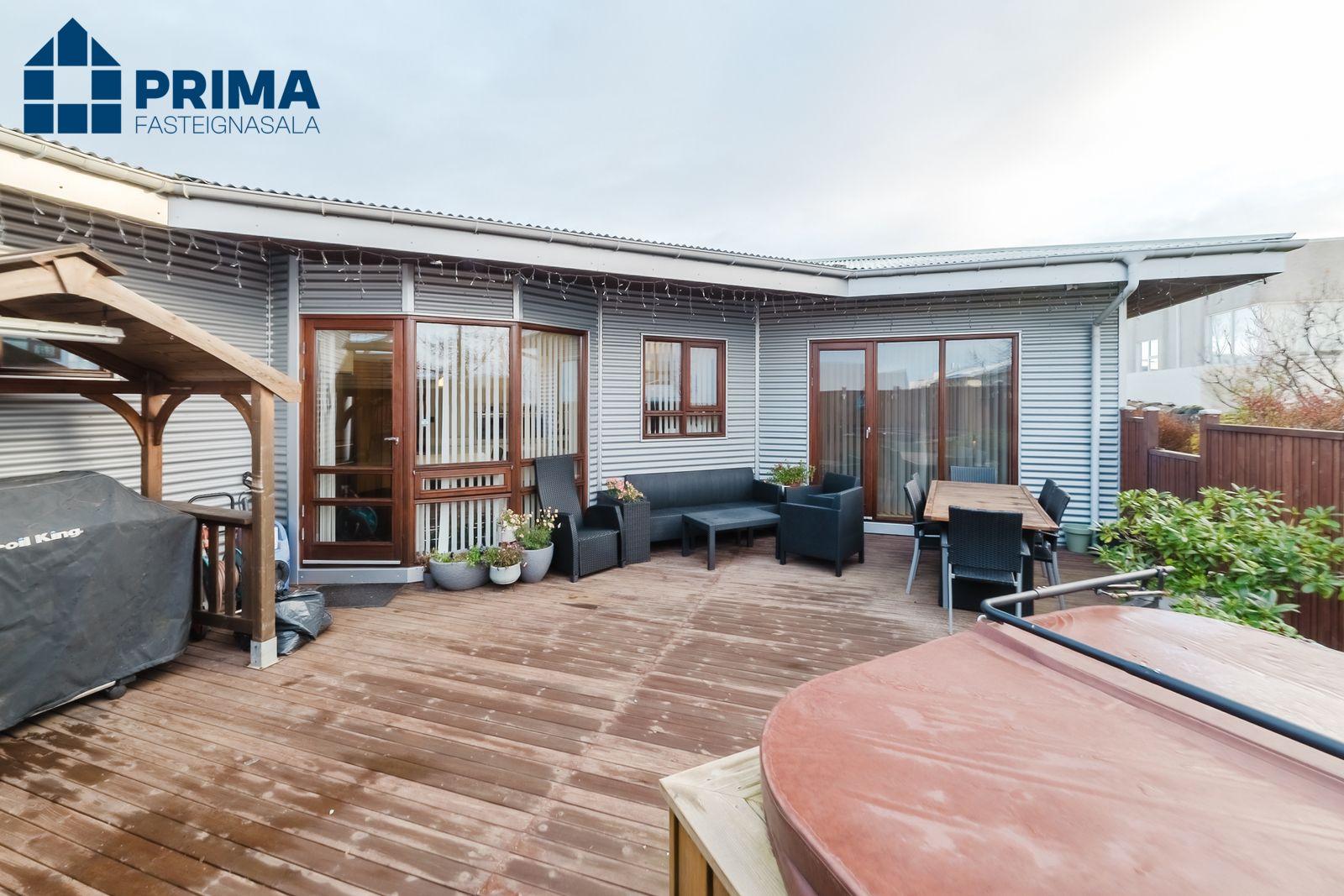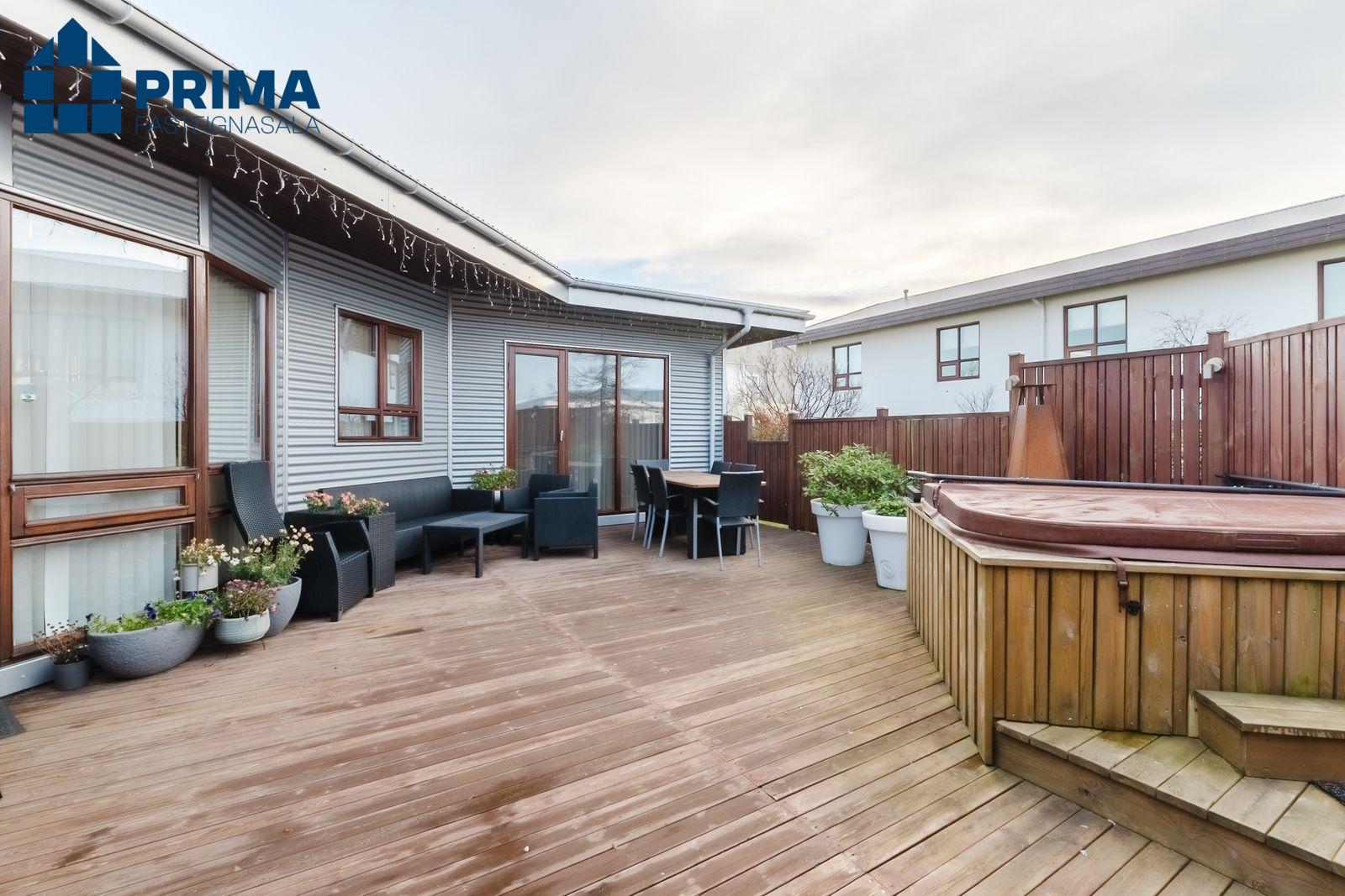 Forstofa, stofa, fjögur svefnherbergi, hjónaherbergi með sturtu, salernis aðstöðu og rúmgóðu fataherbergi, sjónvarpsherbergi, baðherbergi, rúmgott þvottahús og rúmgóður bílskúr með breiðri bílskúrshurð. Sólpallur með heitum potti og geymsluskúr við bifreiðastæði.