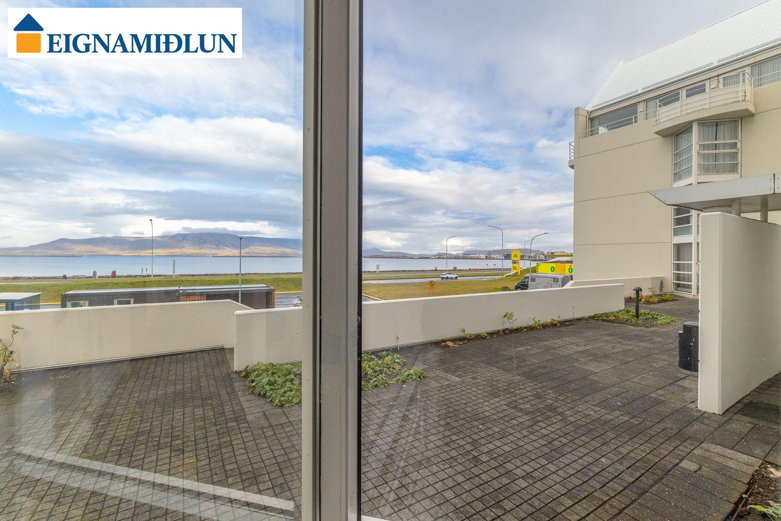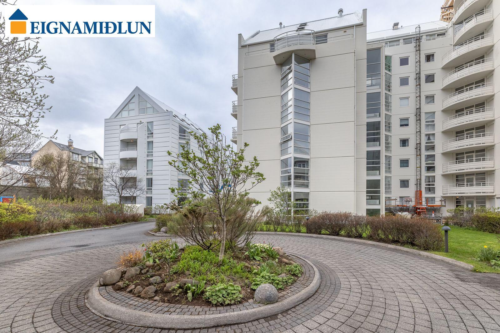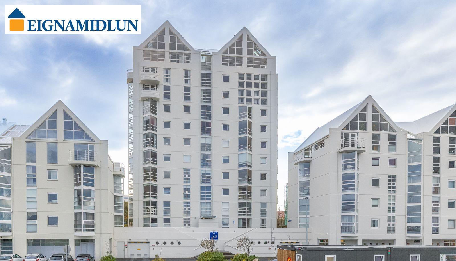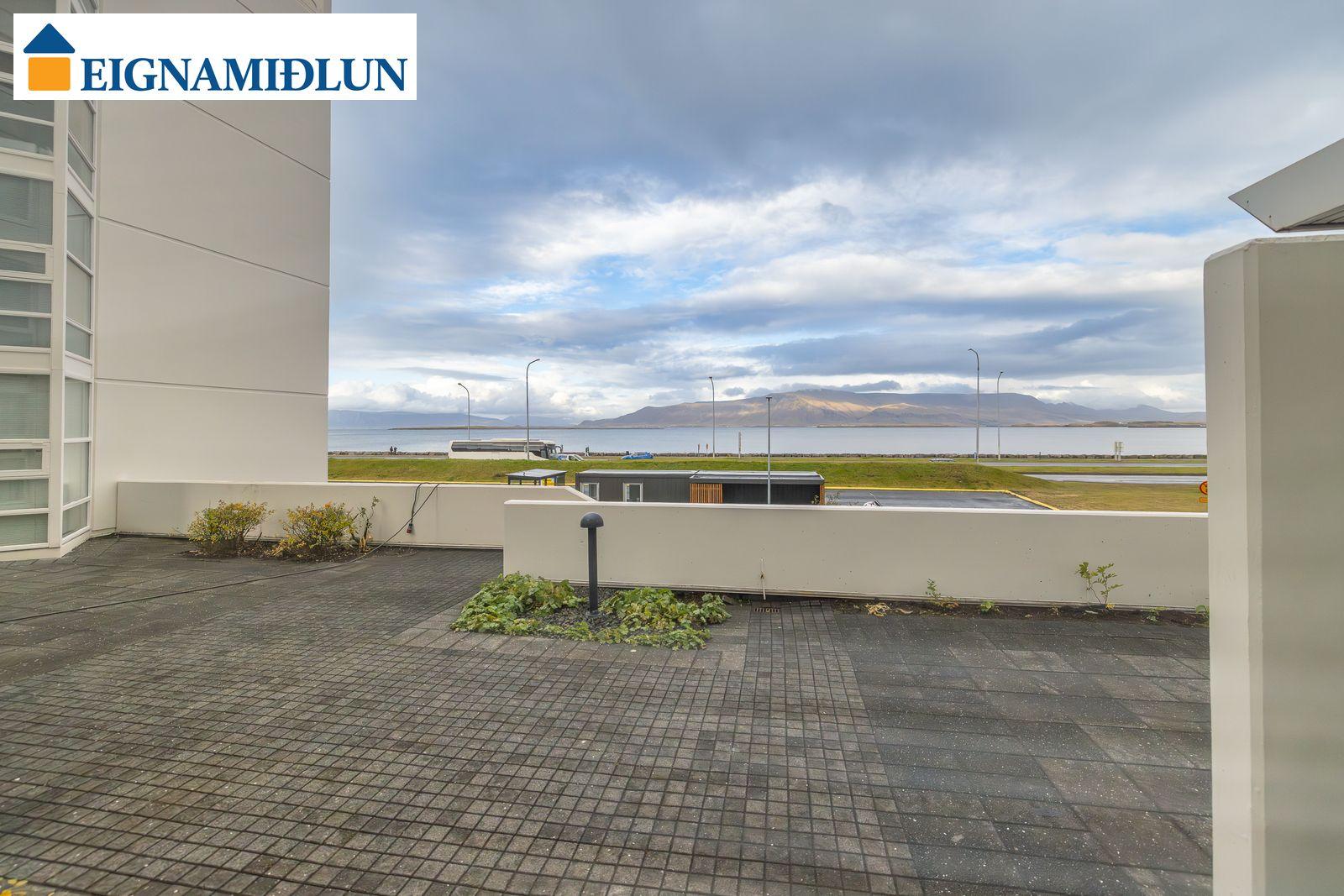 Laus strax - útsýni sem kemur á óvart. Sérlega vel skipulögð 105,0 fermetra björt og mjög rúmgóð íbúð á jarðhæð með afar góðu aðgengi. Íbúðin sjálf er 99 fermetrar og geymsla en 6 fermetrar, en einnig fylgir eigninni bílastæði í lokaðri bílageymslu. Stofur eru mjög rúmgóðar með plássi fyrir stórt borðstofuborð, bjartir gluggar í tvær áttir með útsýni til Esjunnar sem kemur mjög á óvart, útgengi út á sérafnotareit við eldhús og stofu, nýtt eldhús, tvö rúmgóð herbergi, fallegt baðherbergi. Húsið, sem byggt er 1990 og tilheyrir húsaþyrpingu á Völundarlóðinni svokölluðu, lítur vel út og hefur fengið gott viðhald. Verið er að ljúka við stórt viðhaldsverkefni sem seljendur hafa greitt fyrir. Í húsinu starfar húsvörður á vegum húsfélagsins.
