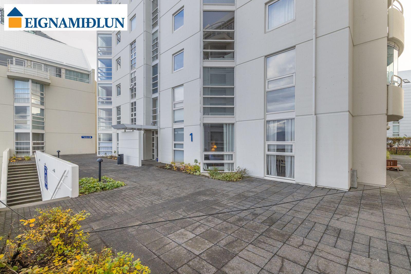 Gott sameiginlegt þvottahús er á hæðinni. Góð geymsla fylgir íbúðinni á jarðhæð sem og sér bílastæði í lokuðu bílastæðahúsinu. Einnig eru sameiginlegar hjóla- og vagnageymslur, önnur við innkeyrsluna í bílageymsluna.