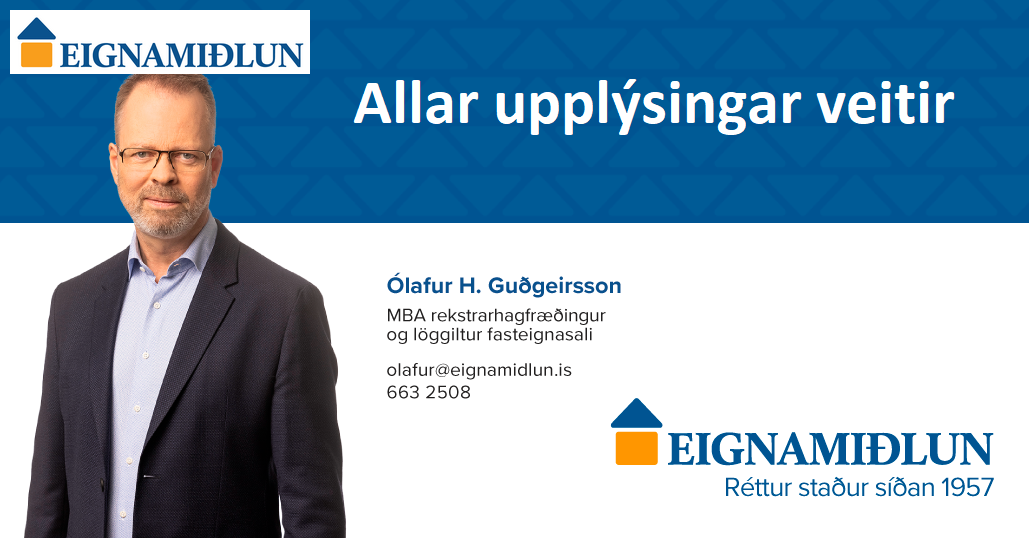 Allar upplýsingar veitir Ólafur H. Guðgeirsson, MBA, lgfs., í síma 663-2508 eða olafur@eignamidlun.is sem einnig sýnir eignina. Til að undirbúa kauptilboð þá er skynsamlegt að fá söluverðmat á þinni eign, þér að kostnaðarlausu. Hringið og ræðið málið í síma 663-2508.