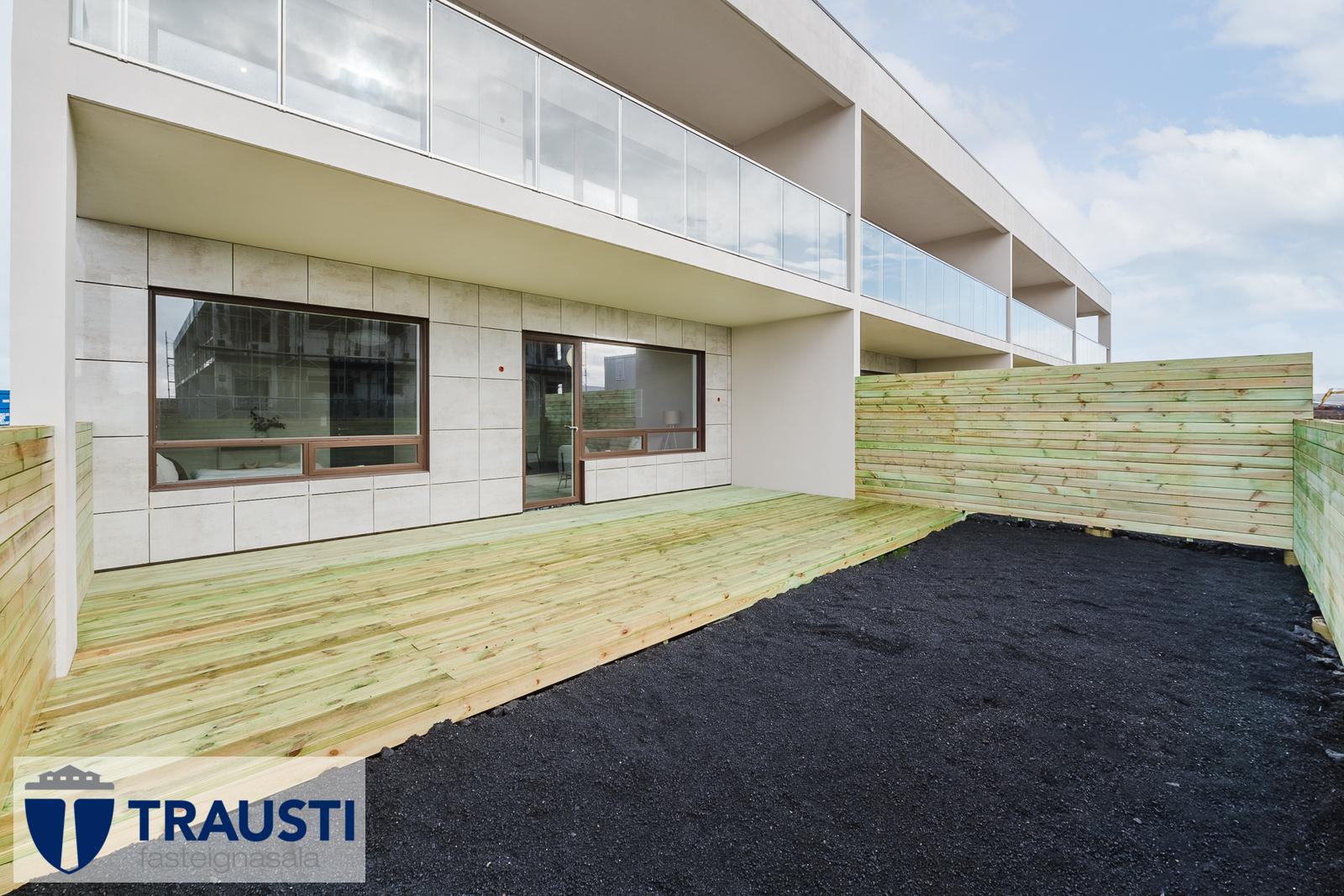 Íbúð 103 er 107,1 fm íbúð með rúmgóðum sérafnotareit, aukinni lofthæð og innfelldri lýsingu.