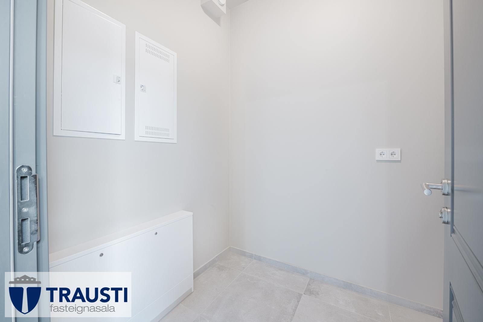 - Þvottahús og geymsla: Sér rými með flísalögðu gólfi og vegghengdum skolvaski.
