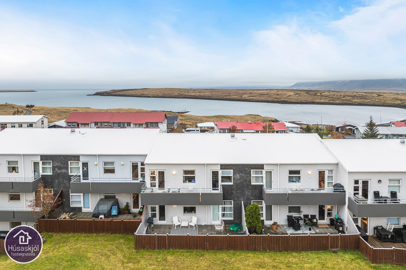 Einstök eign með sjávarútsýni og stórri verönd í barnvænu og rólegu hverfi en samt er stutt í alla þjónustu, skóla, leikskóla og gönguleiðir.