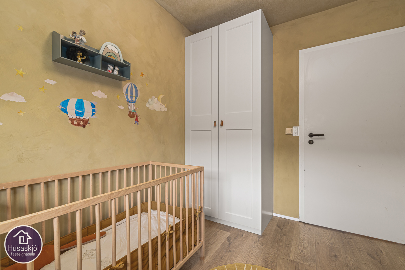 Barnaherbergin eru 2 með harðparketi og skápum.