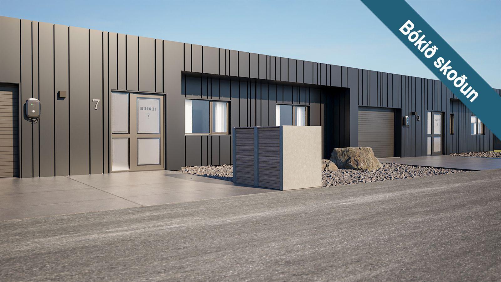 *** Afhendist full frá gengið að innan og utan.Sjáið video hér af innra og ytra skipulagiSkil eignar að utanÚtveggir eru klæddir að utan með stuðlaðri álklæðningu í sama lit og þakkantur (RAL7021)