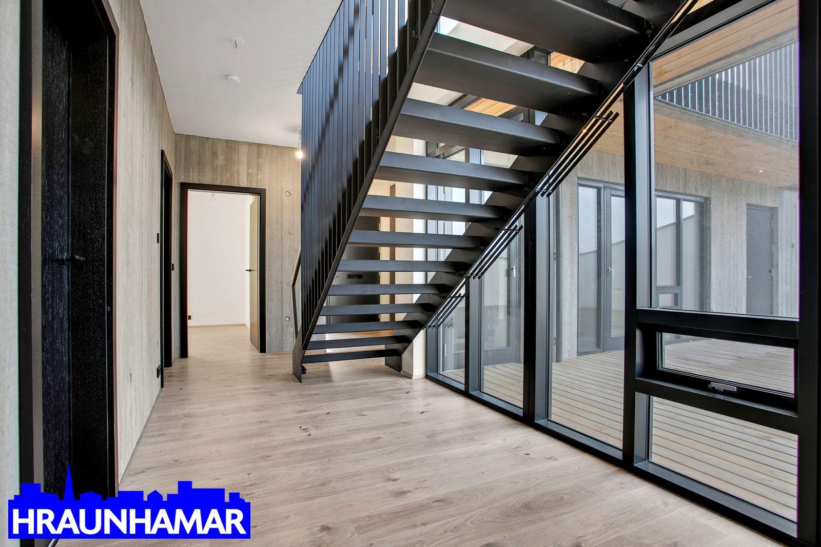 Um er að ræða 7 raðhús á tveimur hæðum. Sjá aðrar eignir hér. Húsin eru einstaklega vönduð með Free@Home hússtjórnunarkerfi, sjónsteypuveggjum að hluta, vönduðum innréttingum, stórum svölum. Opið bílskýli.