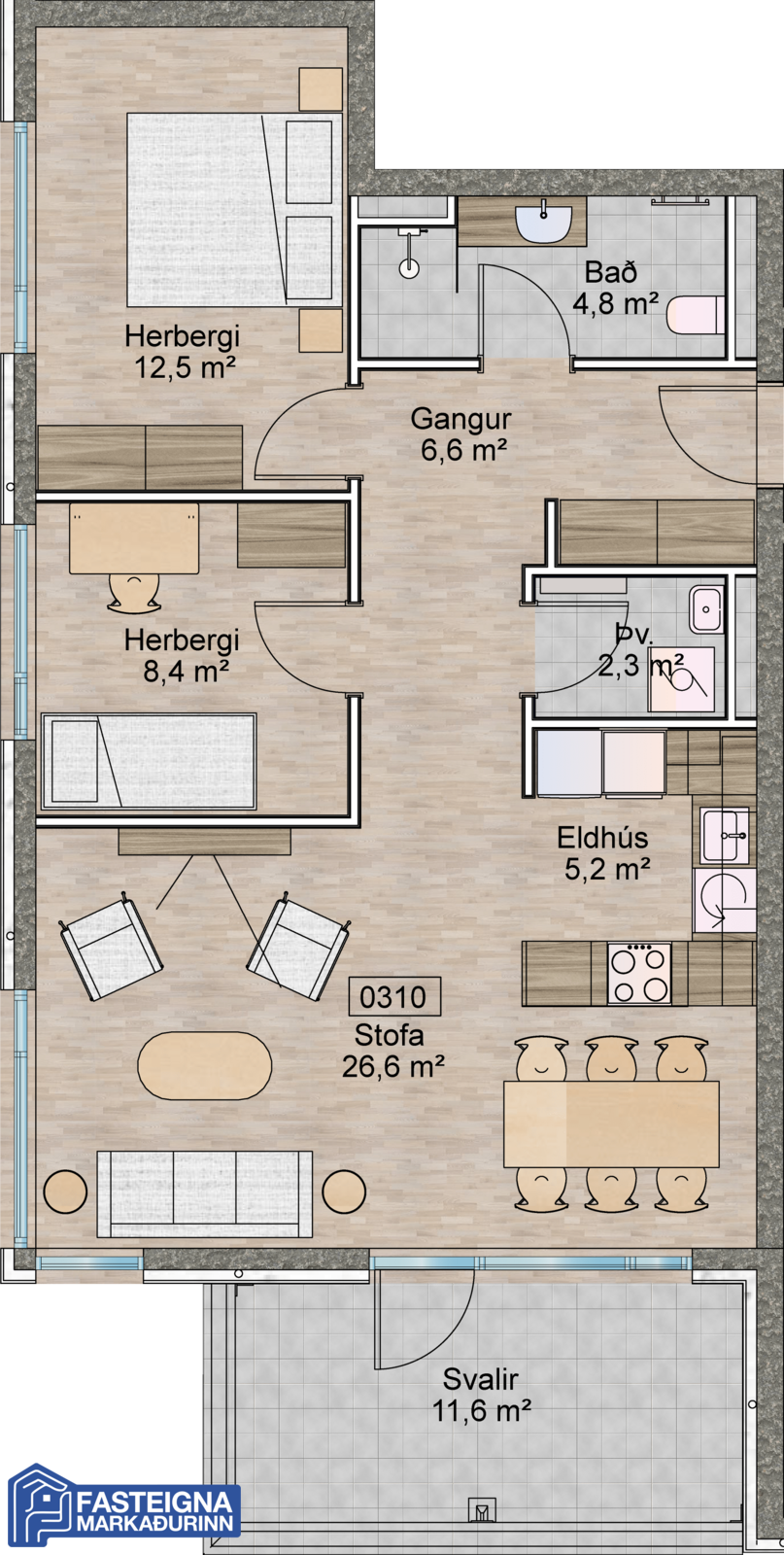 Allar nánari upplýsingar og tímapantanir á skoðun íbúða í húsinu er að fá á skrifstofu Fasteignamarkaðarins ehf. í síma 570-4500 eða á netfanginu fastmark@fastmark.is