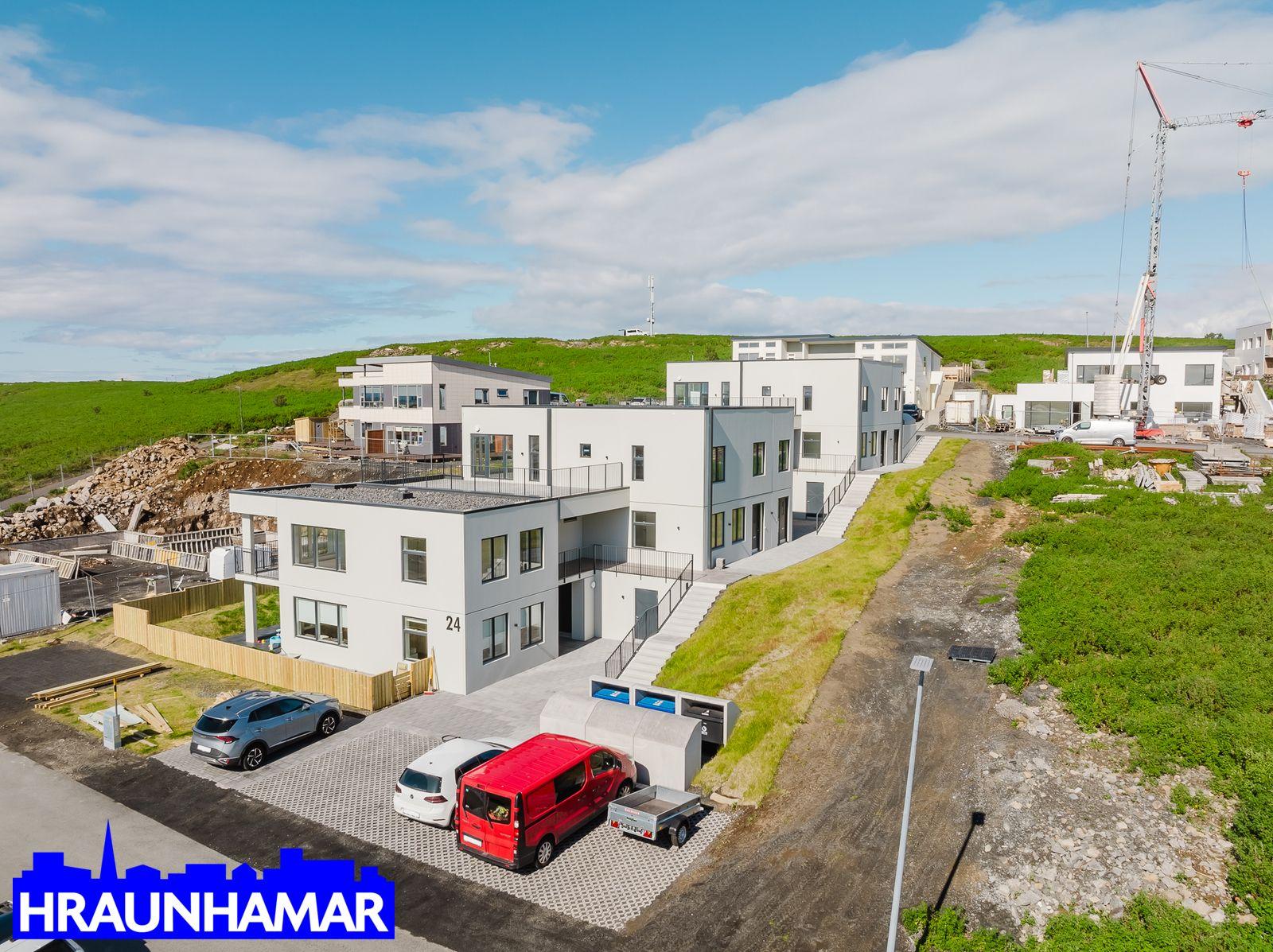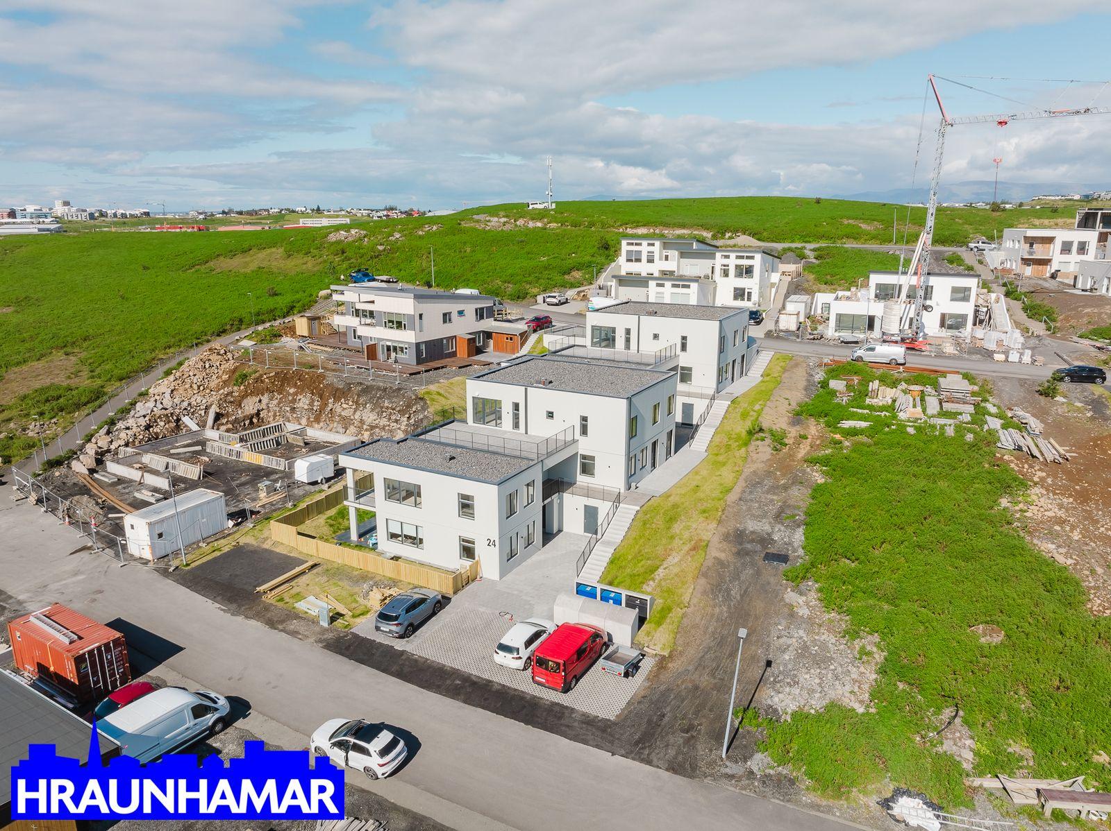 Megin burðarkerfi hússins er steinsteypa. Veggir eru forsteyptar einingar frá BM-Vallá. Plötur eru steinsteyptar, uppbyggðar úr forsteyptum filigranplötum og ásteypulagi.Bókið skoðun hjá sölumönnum Hraunhamars: Glódís Helgadóttir löggiltur fasteignasali s. 659-0510,