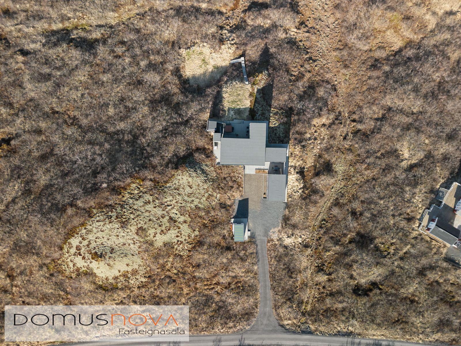 Eignin stendur á 9000 fm eignarlóð á lokuðu frístundahúsasvæði (símahlið) með fallegu útsýni til suðurs, vesturs og fjalla í norðri.