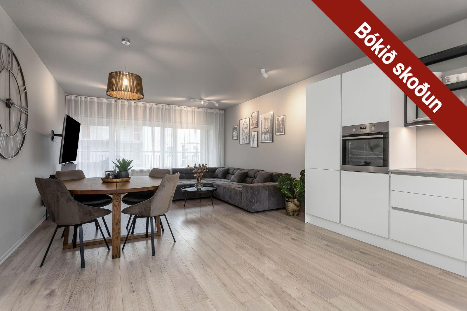 Annað: Íbúðinni fylgir hlutdeild að sameiginlegri vagna- og hjólageymslu. Hellulögð stétt er fyrir framan hús og baklóð tyrft. Sameiginleg malbikuð stæði á framlóð hússins. Rafhleðslustaurar er á lóð í eigu húsfélagsins. Húsið og sameign hafa fengið gott viðhald á undanförnum árum. Meðal annars hefur nýlega verið farið í múrviðgerðir og húsið steinað og málað. Þá er nýlega búið að byggja svalalokun yfir svalagang efstu hæða til þess að vernda húsið fyrir veðri. Nýlega búið að skipta um myndavéladyrasíma í húsinu og mála og skipta um teppi í stigagangi. Samþykkt var að leggja rafmagn fyrir hleðslu i bilakjallarann, þannig að það fólk þarf þá bara að leigja eða greiða fyrir hleðslustöðina.