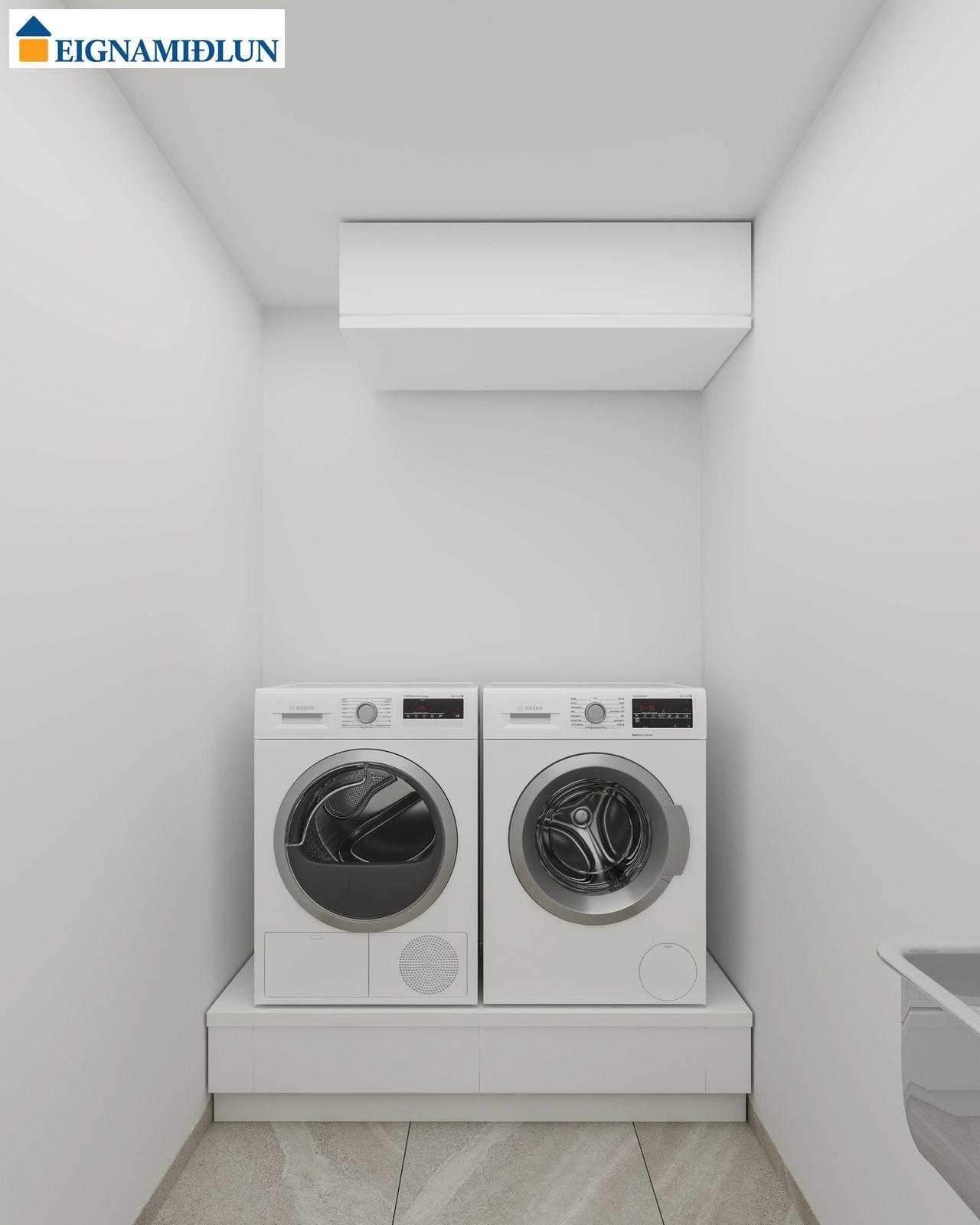 INNRÉTTINGAR: Eldhúsinnréttingar eru sérsmíðaðar frá Selós. Skápar eru úr vönduðu stitsterku melamin efni. Vönduð heimilistæki eru í íbúðum sem eru frá AEG. Kæli-/frystiskápur og uppþvottavél eru innbyggð í innréttinguna og spanhelluborð. Dekton – Rem steinborðplötur eru í öllum eldhúsum og Silestone – Nolita steinborðplötur eru á böðum. Gólfhiti er í gólfi baðherbergis auk handklæðaofns. Bílastæði í kjallara fylgja öllum íbúðum og möguleiki er á að kaupa viðbótarstæði.