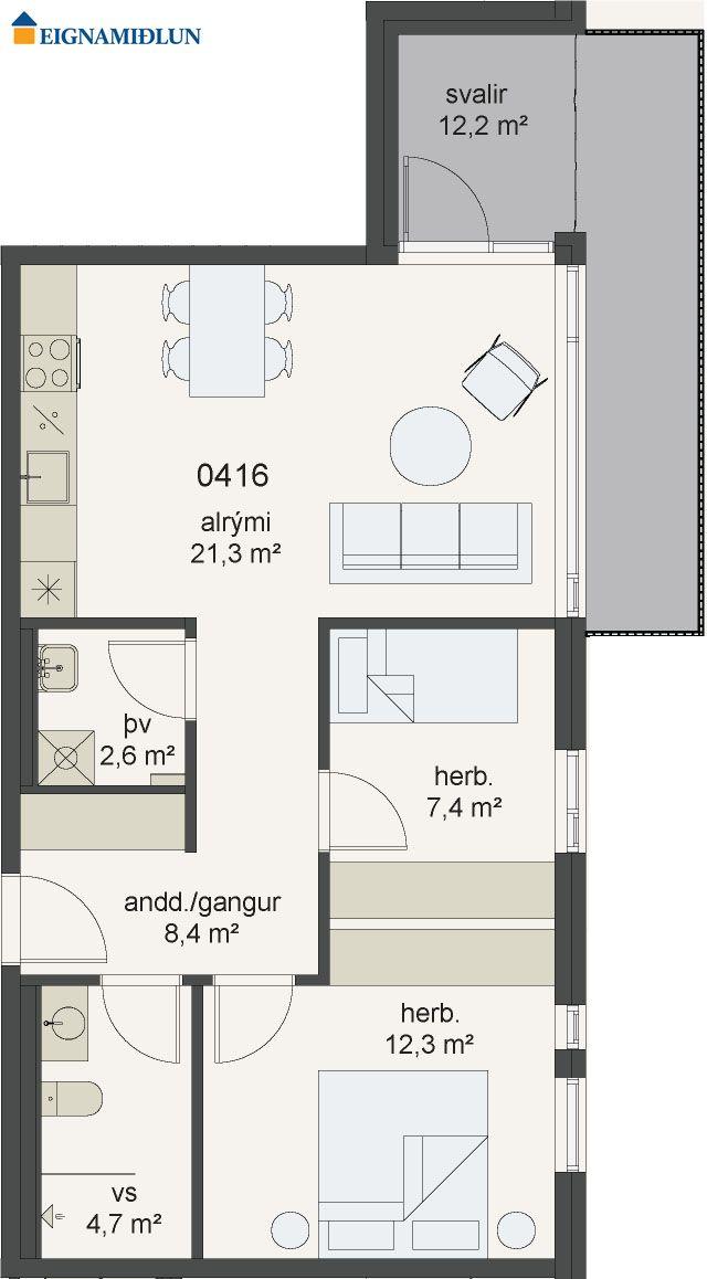 Nánar: Íbúð merkt 04-16 er með 2 svefnherbergjum,eldhúsi, stofu og baðherbergi. Sérþvottahús. Geymsla í sameign fylgir. Íbúðinni fylgir stæði í bílakjallara merkt B-035.