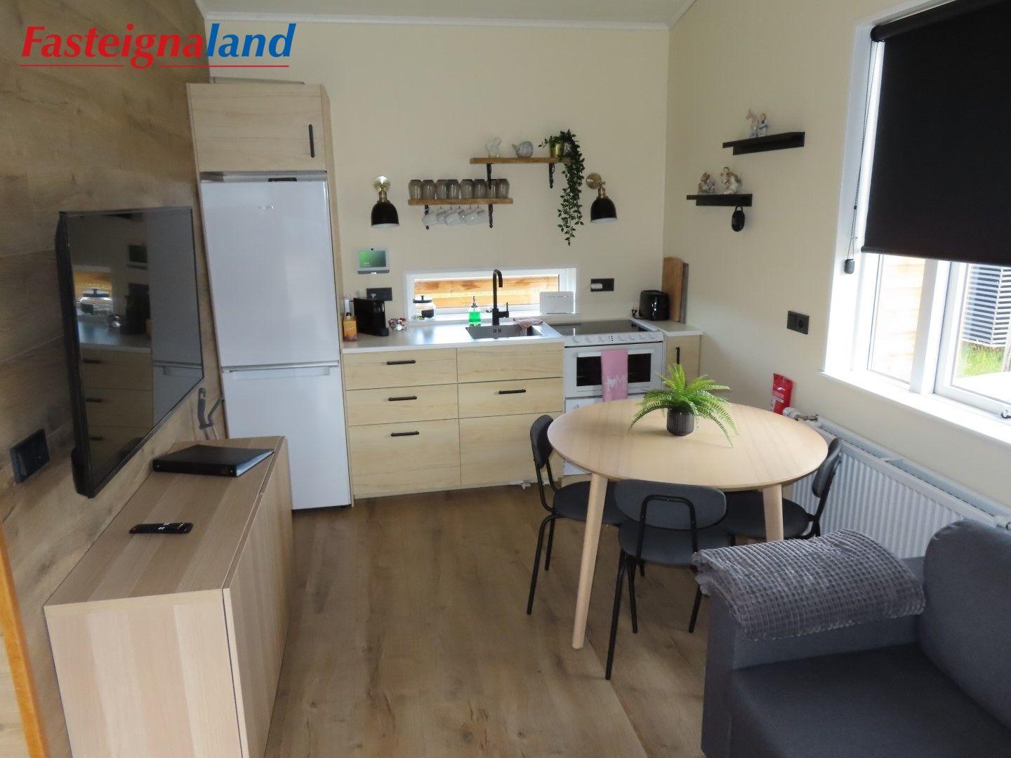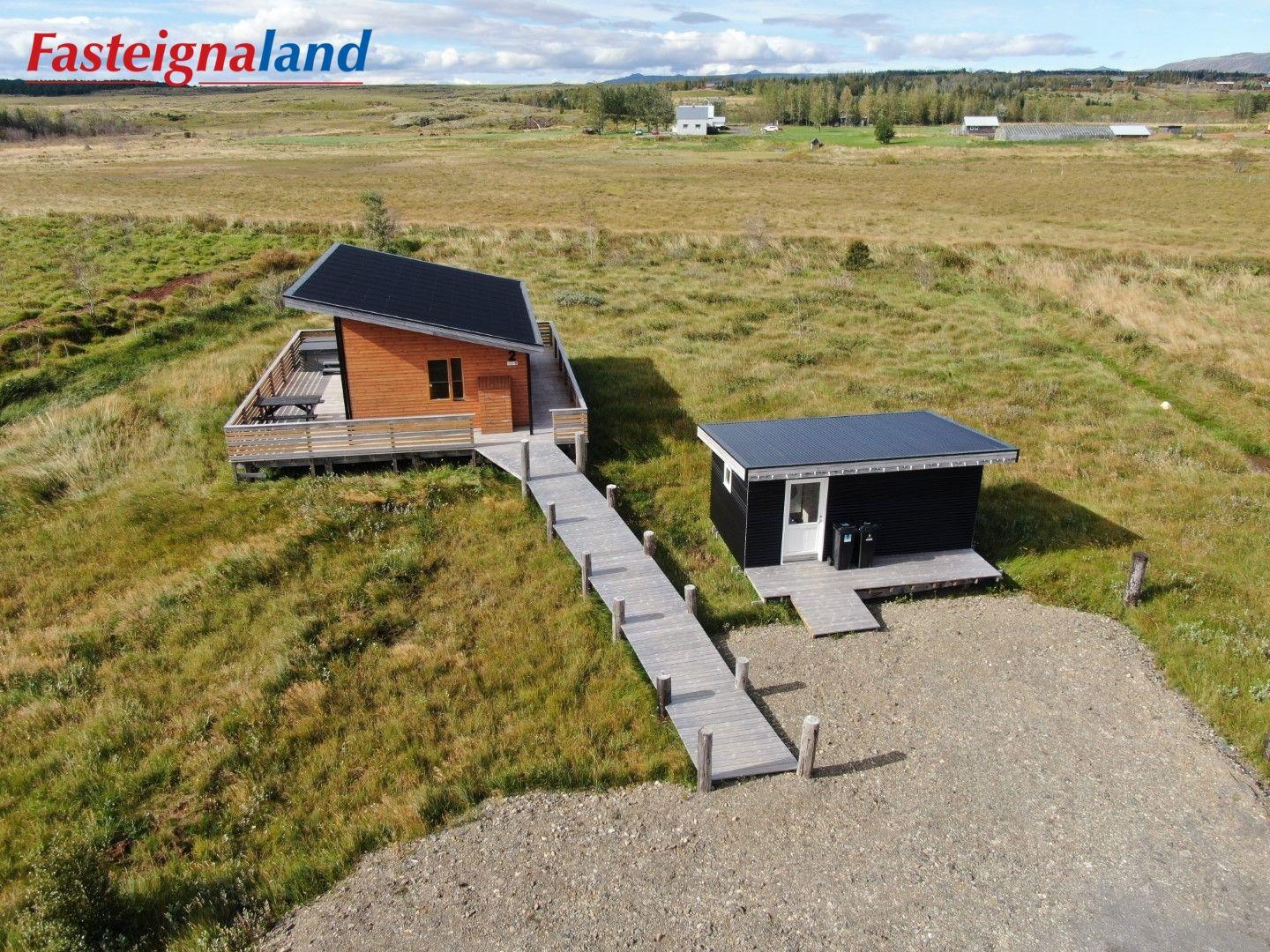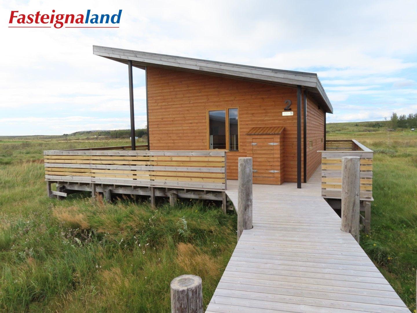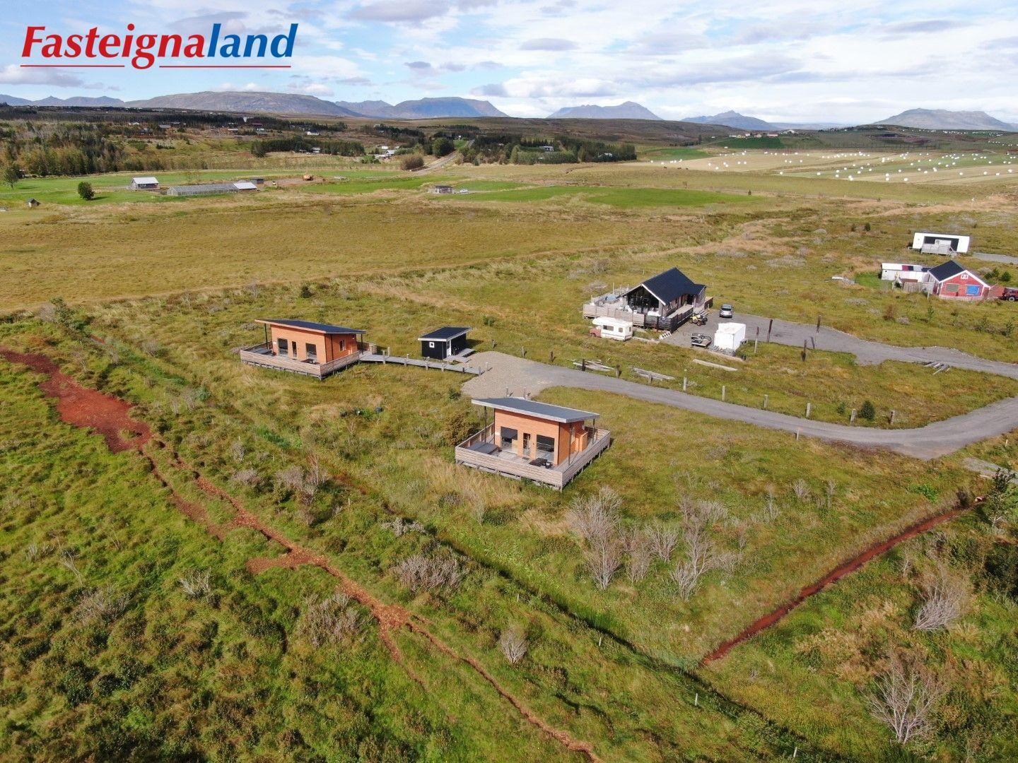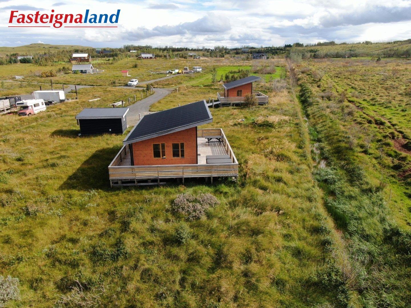 Lýsing á eign nr. 1: Hús skráð gestahús 30 fm. Komið inn alrými/stofu með parketi á gólfi. Herbergi með parketi á gólfi. Baðherbergi með flísum á gólfi og fíbo plötum á veggjum, viðarinnréttingu og „walk in“ sturtu. Eldhús og stofa í sama rými L-laga með góðri lofhæð. Viðarinnréttingu og sambyggðri eldavél með kermik helluborði/uppþvottavél. Góður pallur með handriðið. Heitur pottur.