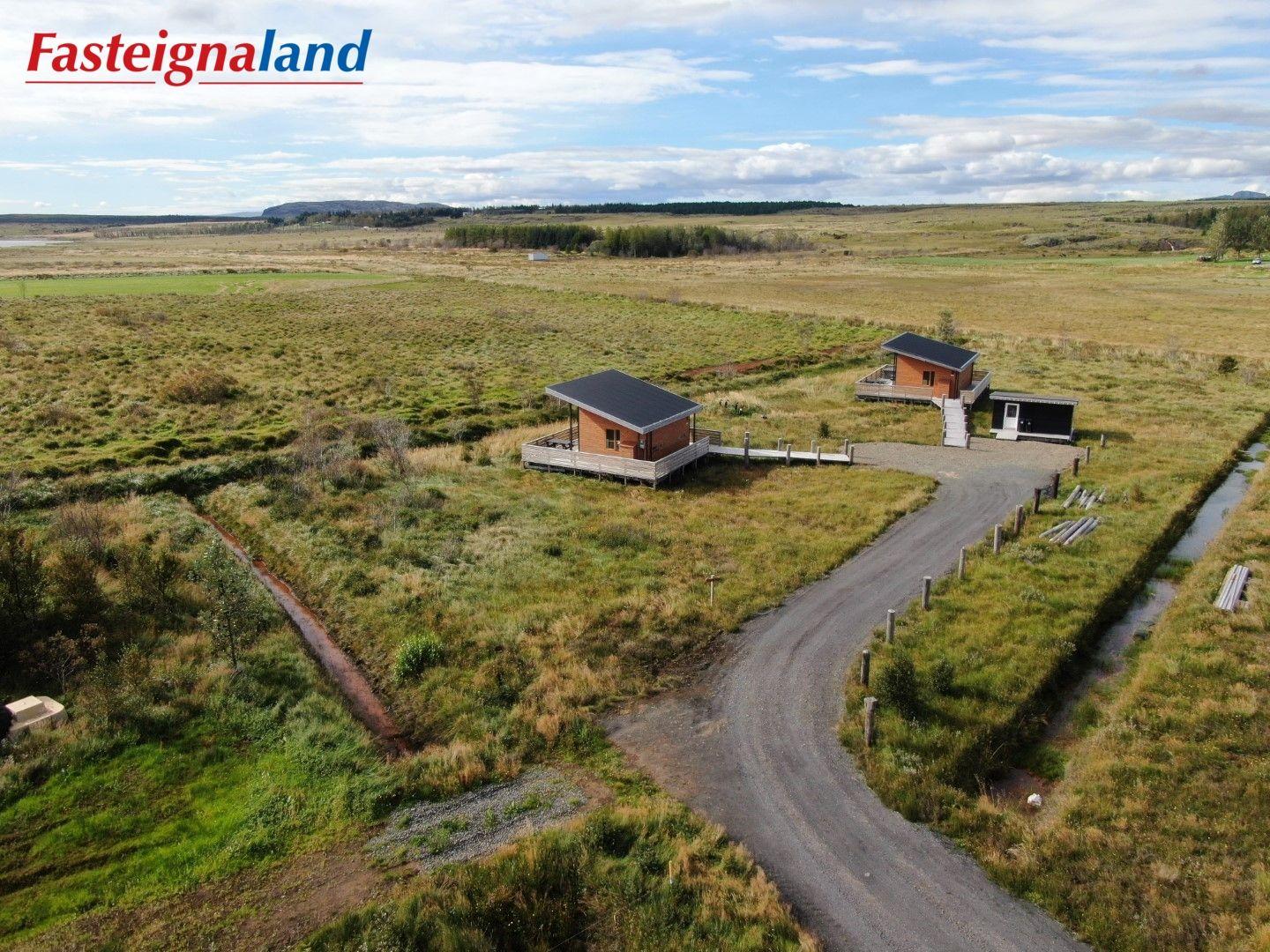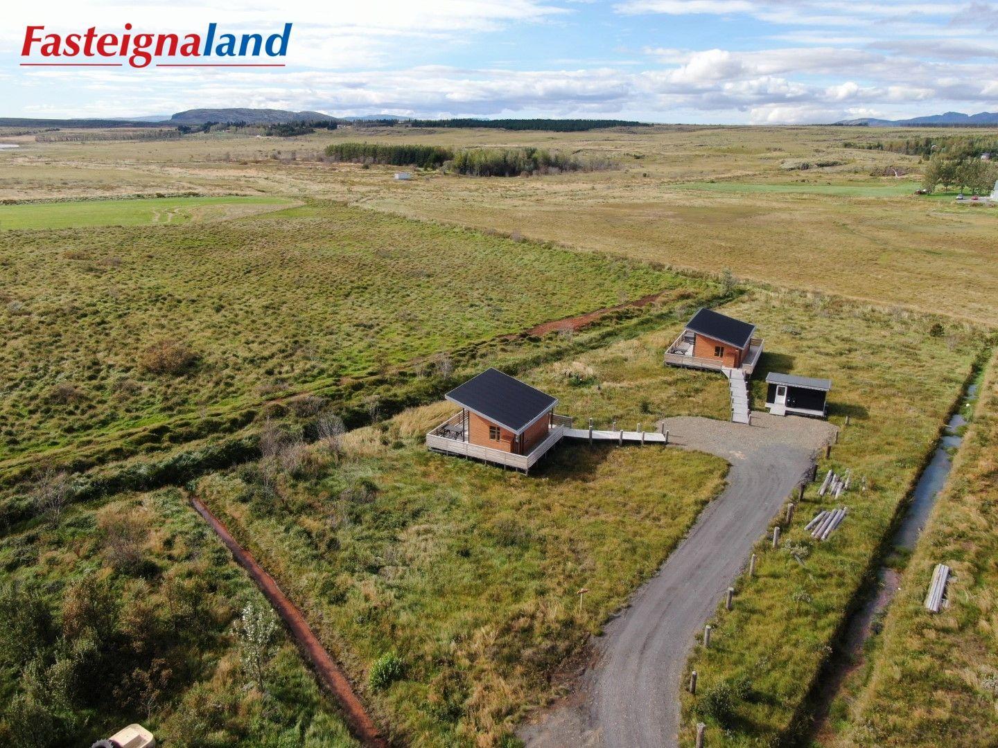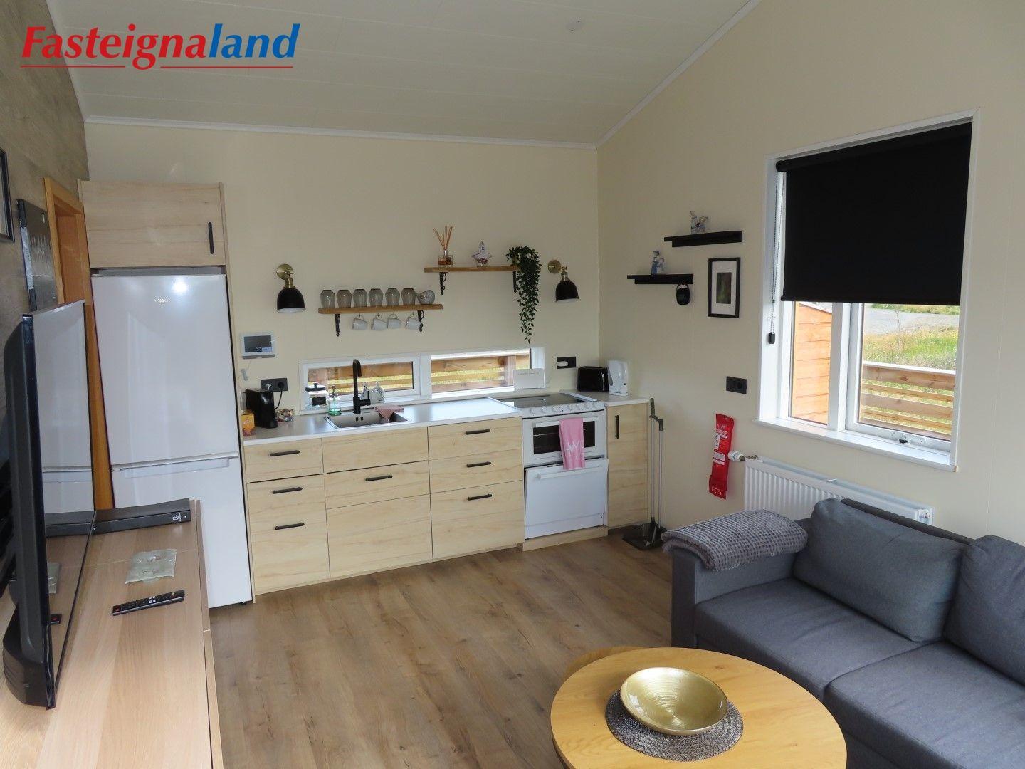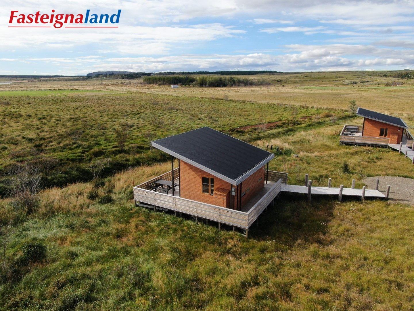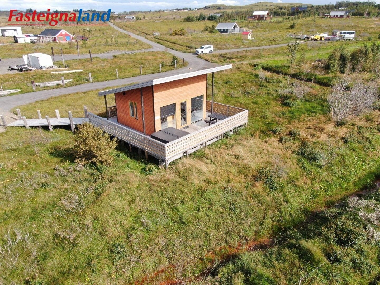 Lýsing á eign nr. 1: Hús skráð gestahús 30 fm. Komið inn alrými/stofu með parketi á gólfi. Herbergi með parketi á gólfi. Baðherbergi með flísum á gólfi og fíbo plötum á veggjum, viðarinnréttingu og „walk in“ sturtu. Eldhús og stofa í sama rými L-laga með góðri lofhæð. Viðarinnréttingu og sambyggðri eldavél með kermik helluborði/uppþvottavél. Góður pallur með handriðið. Heitur pottur.