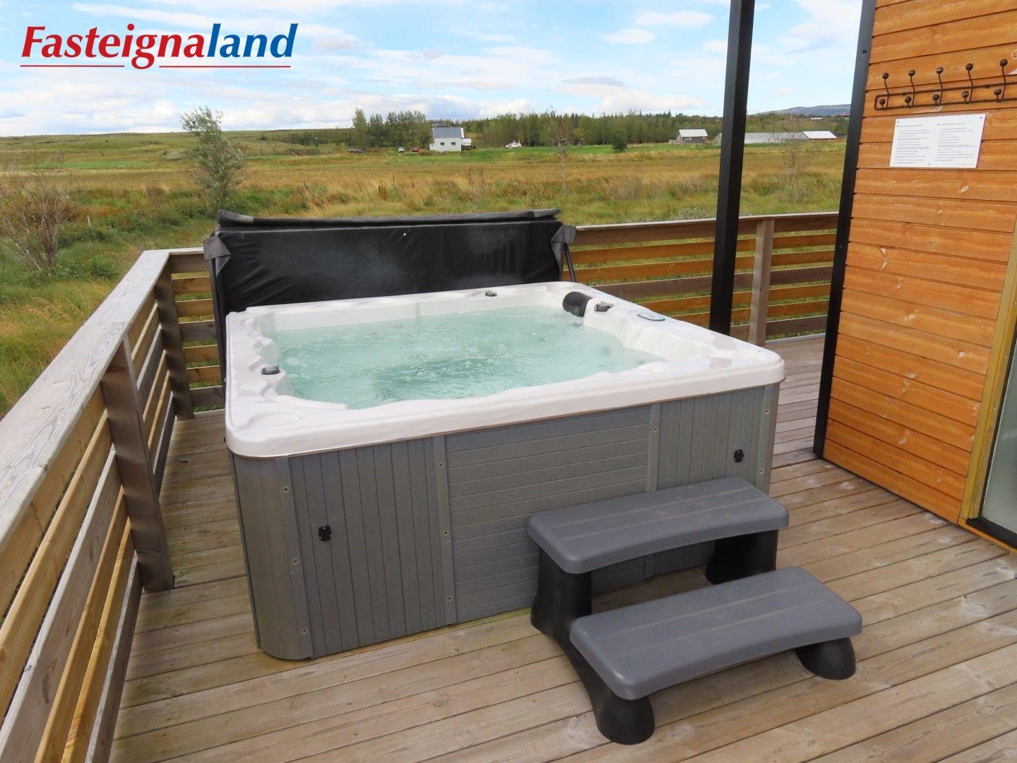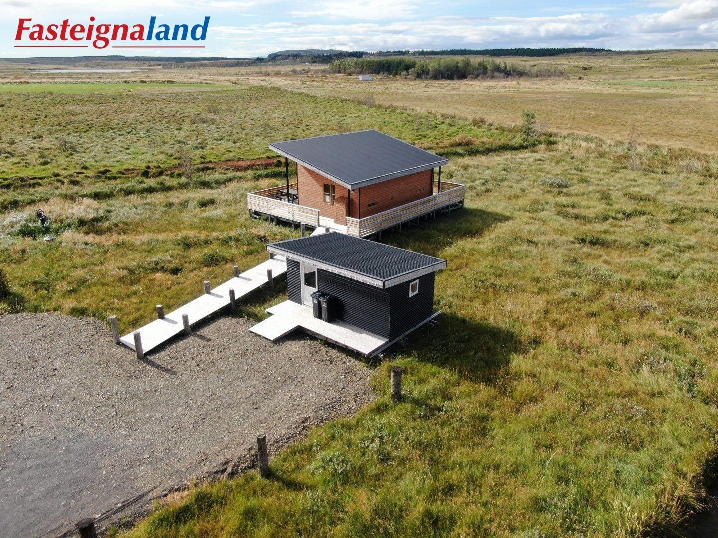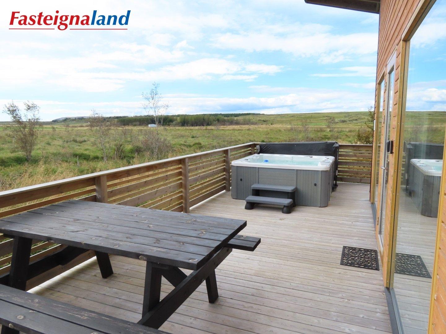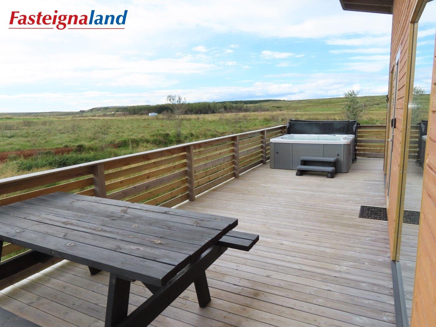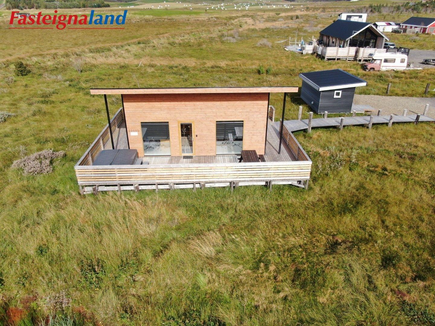 Lýsing á eign nr. 1: Hús skráð gestahús 30 fm. Komið inn alrými/stofu með parketi á gólfi. Herbergi með parketi á gólfi. Baðherbergi með flísum á gólfi og fíbo plötum á veggjum, viðarinnréttingu og „walk in“ sturtu. Eldhús og stofa í sama rými L-laga með góðri lofhæð. Viðarinnréttingu og sambyggðri eldavél með kermik helluborði/uppþvottavél. Góður pallur með handriðið. Heitur pottur.