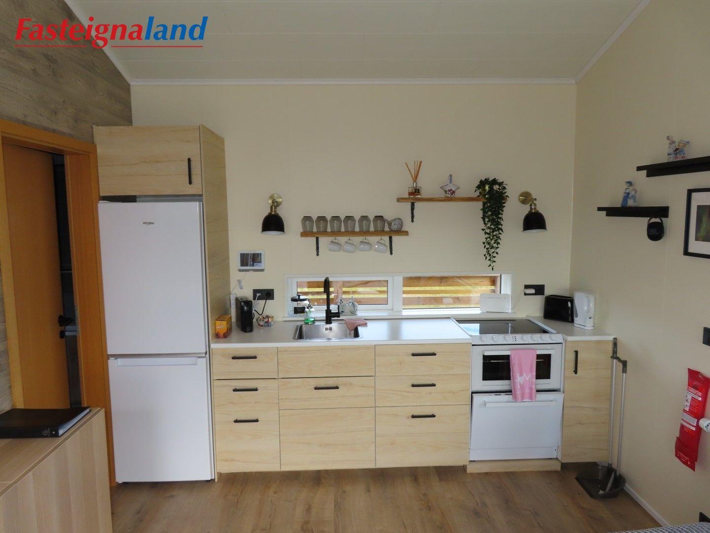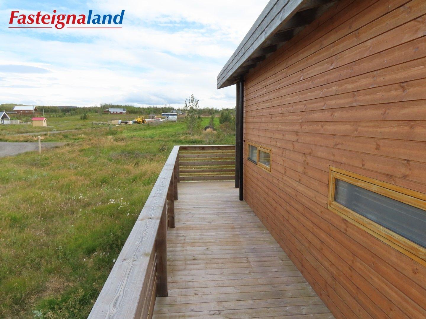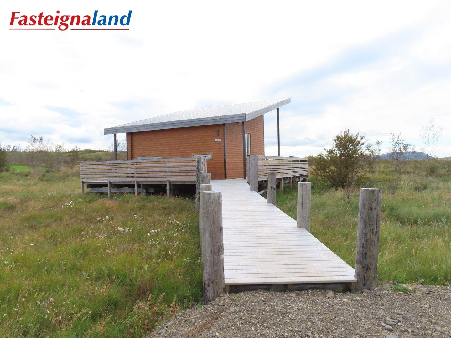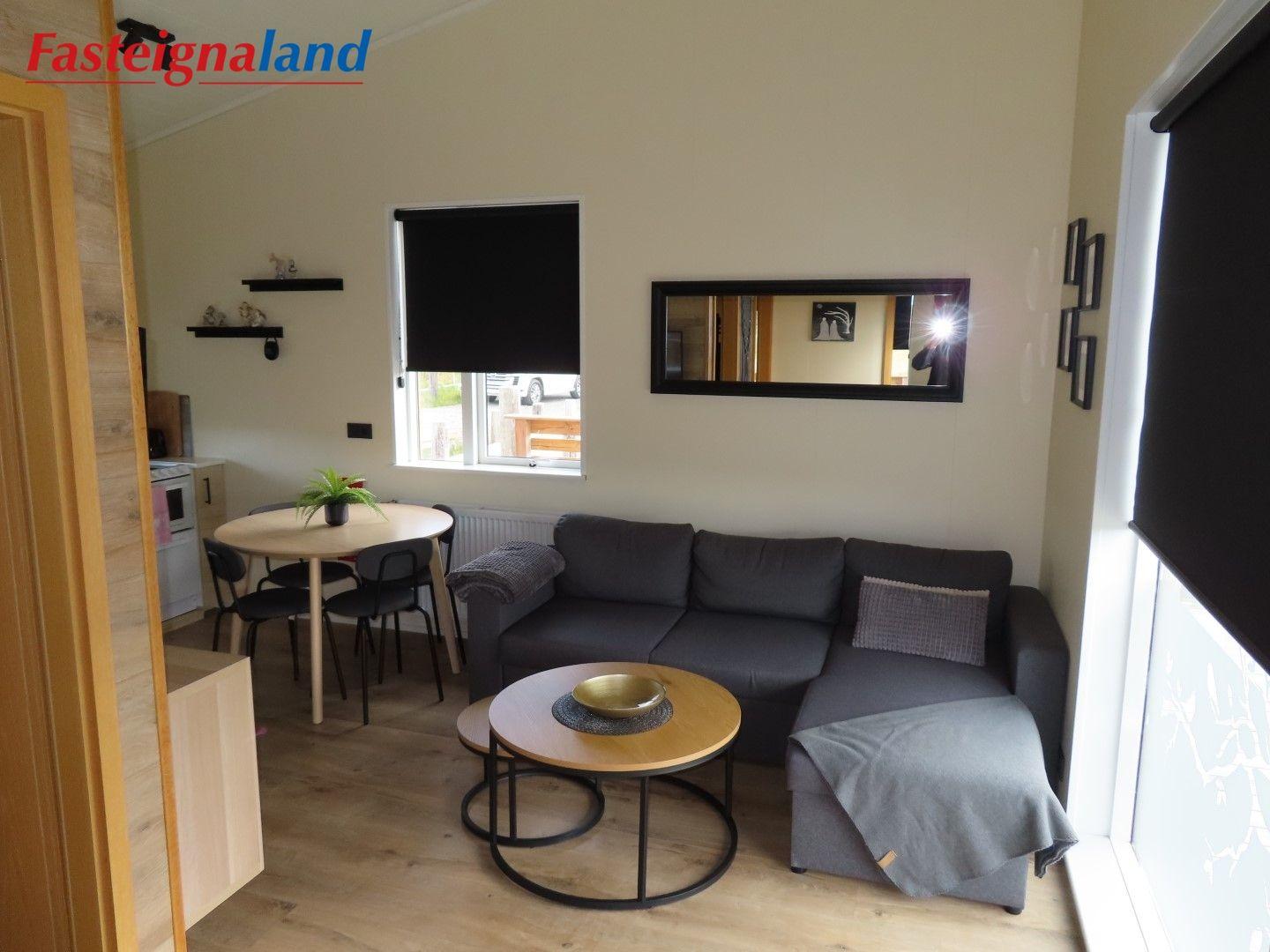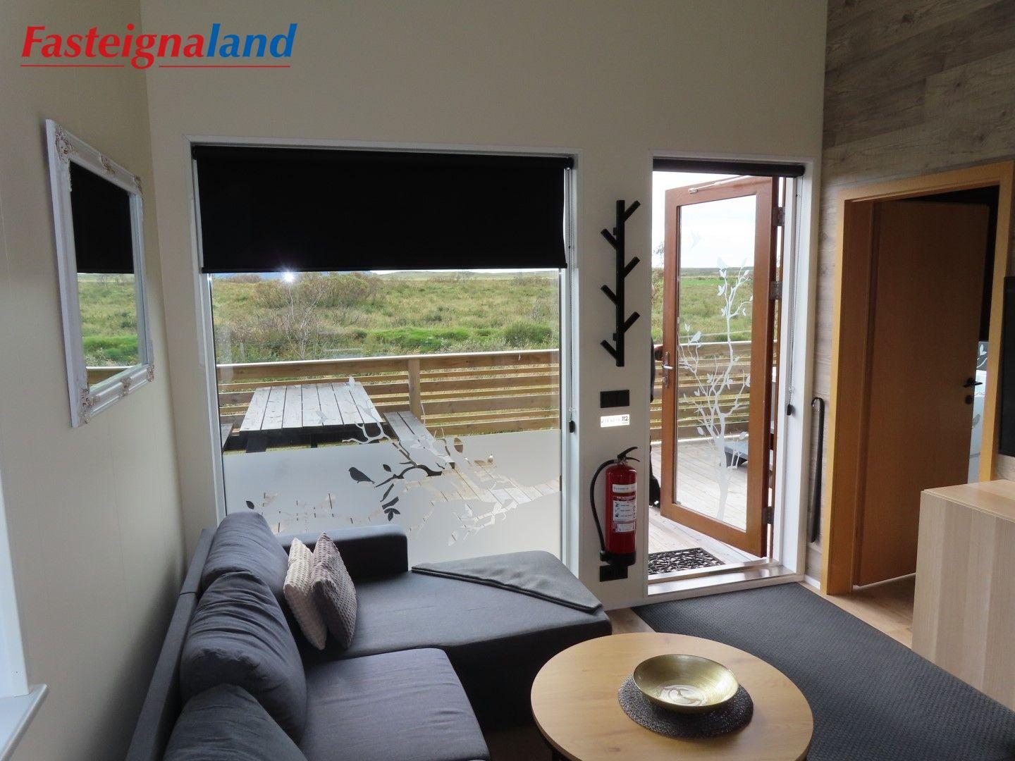Lýsing á eign nr. 1: Hús skráð gestahús 30 fm. Komið inn alrými/stofu með parketi á gólfi. Herbergi með parketi á gólfi. Baðherbergi með flísum á gólfi og fíbo plötum á veggjum, viðarinnréttingu og „walk in“ sturtu. Eldhús og stofa í sama rými L-laga með góðri lofhæð. Viðarinnréttingu og sambyggðri eldavél með kermik helluborði/uppþvottavél. Góður pallur með handriðið. Heitur pottur.