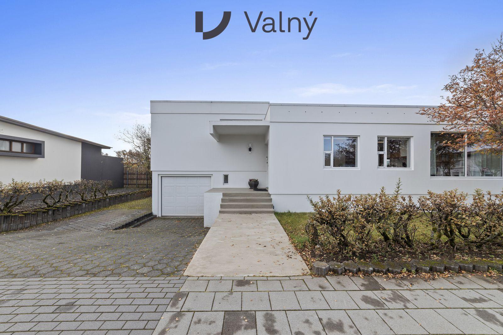 Háaleiti 31, 230 ReykjanesbærVel skipulagt sex herbergja einbýlishús á vinsælum og rólegum stað í Keflavík. Um er að ræða fjögur svefnherbergi, rúmgott alrými og þvottahús, innbyggðan bílskúr og stóra lóð með hellulagðri verönd og heitum potti. Snjóbræðsla er í innkeyrslu og stétt.