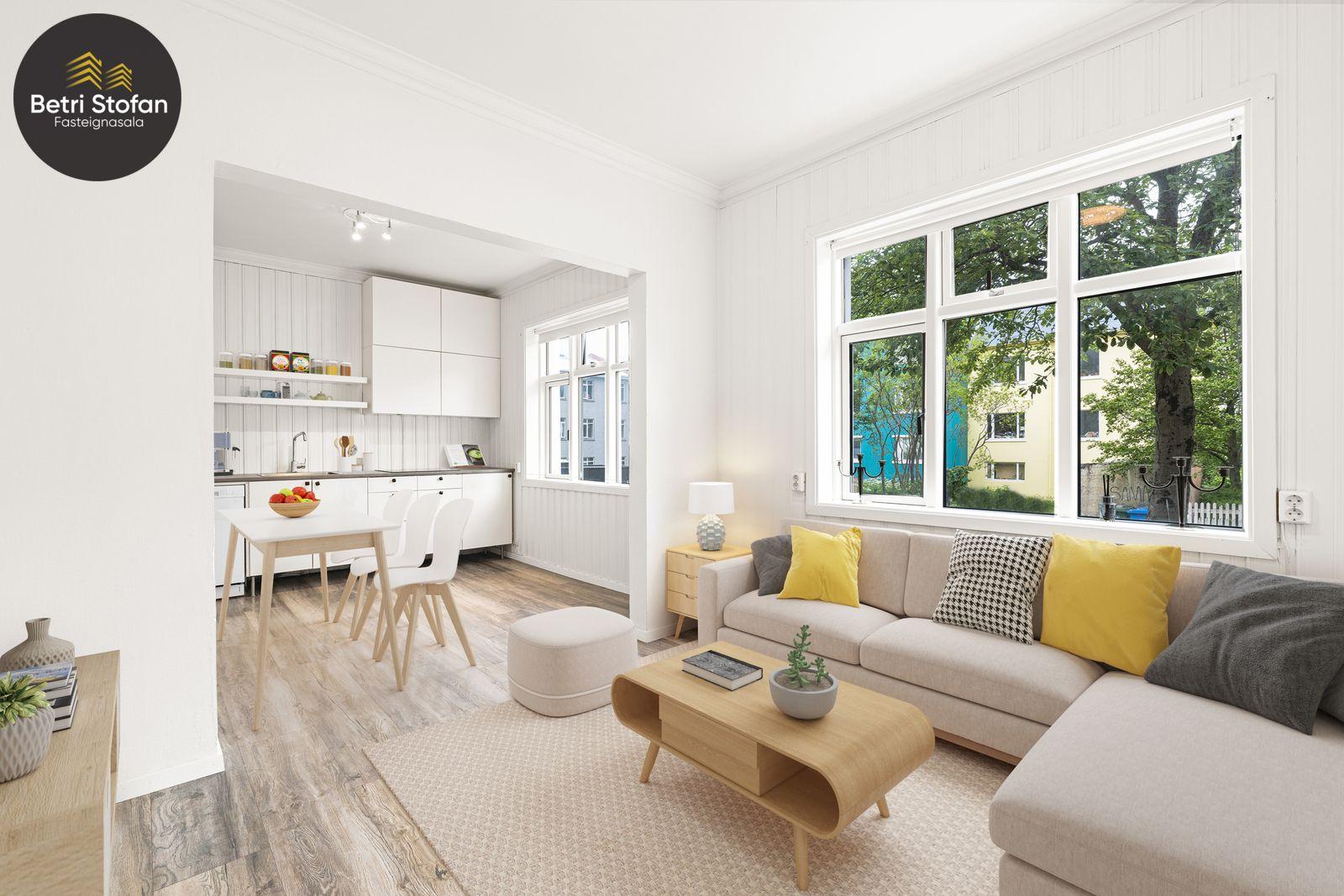 Íbúðin skiptist í gang, 3 rúmgóð svefnherbergi, baðherbergi, samliggjandi stofu og eldhúsi. Í bakgarði er skúr sem búið er að breyta og útbúa stúdíóíbúð. Sérinngangur í aukaíbúð úr bakgarði. Mjög gott skipulag og nýtast fermetrar innan íbúðar afar vel. Ein íbúð á palli. Frábær staðsetning í miðbæ Reykjavíkur með alla þá þjónustu, verslun og afþreyingu sem hann hefur upp á að bjóða. Góð fjölskyldueign með útleigueiningu. Einnig góð eign til fjárfestingar með möguleika á mjög góðum leigutekjum.