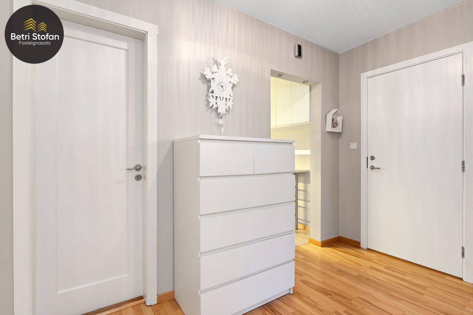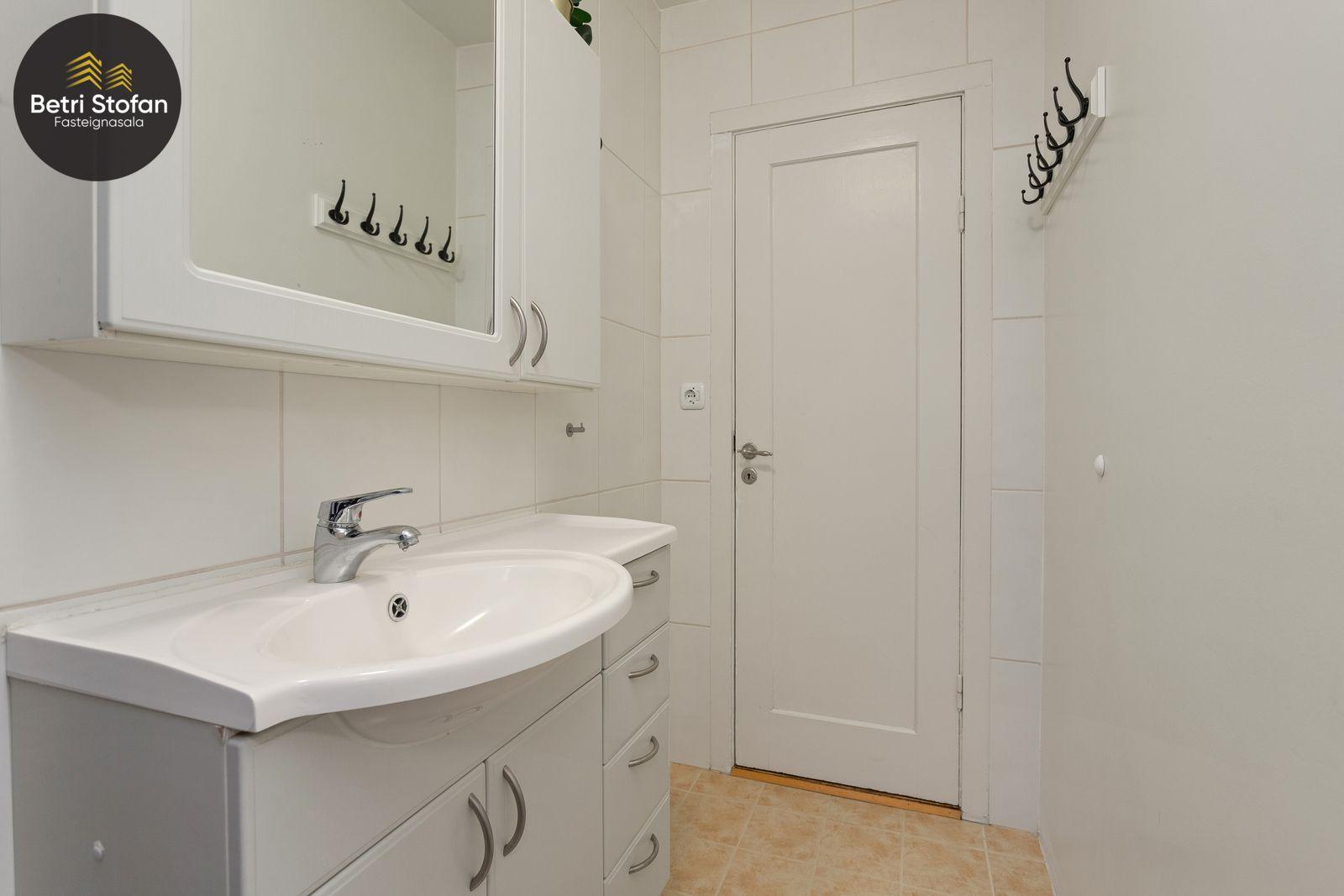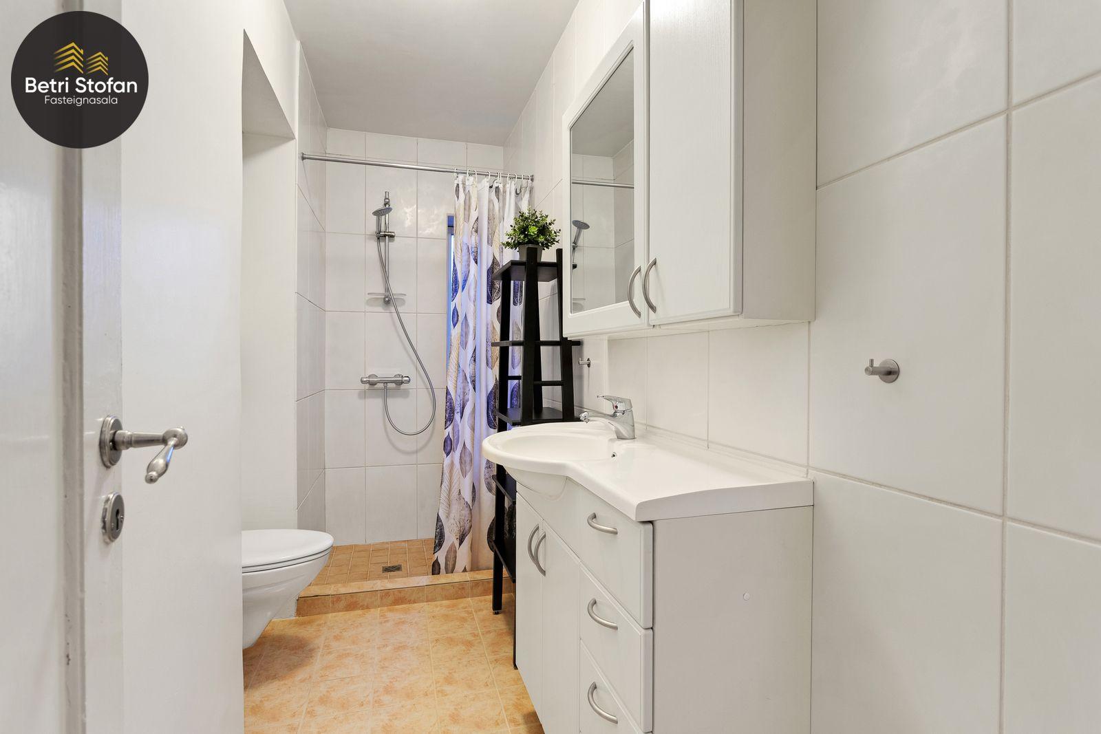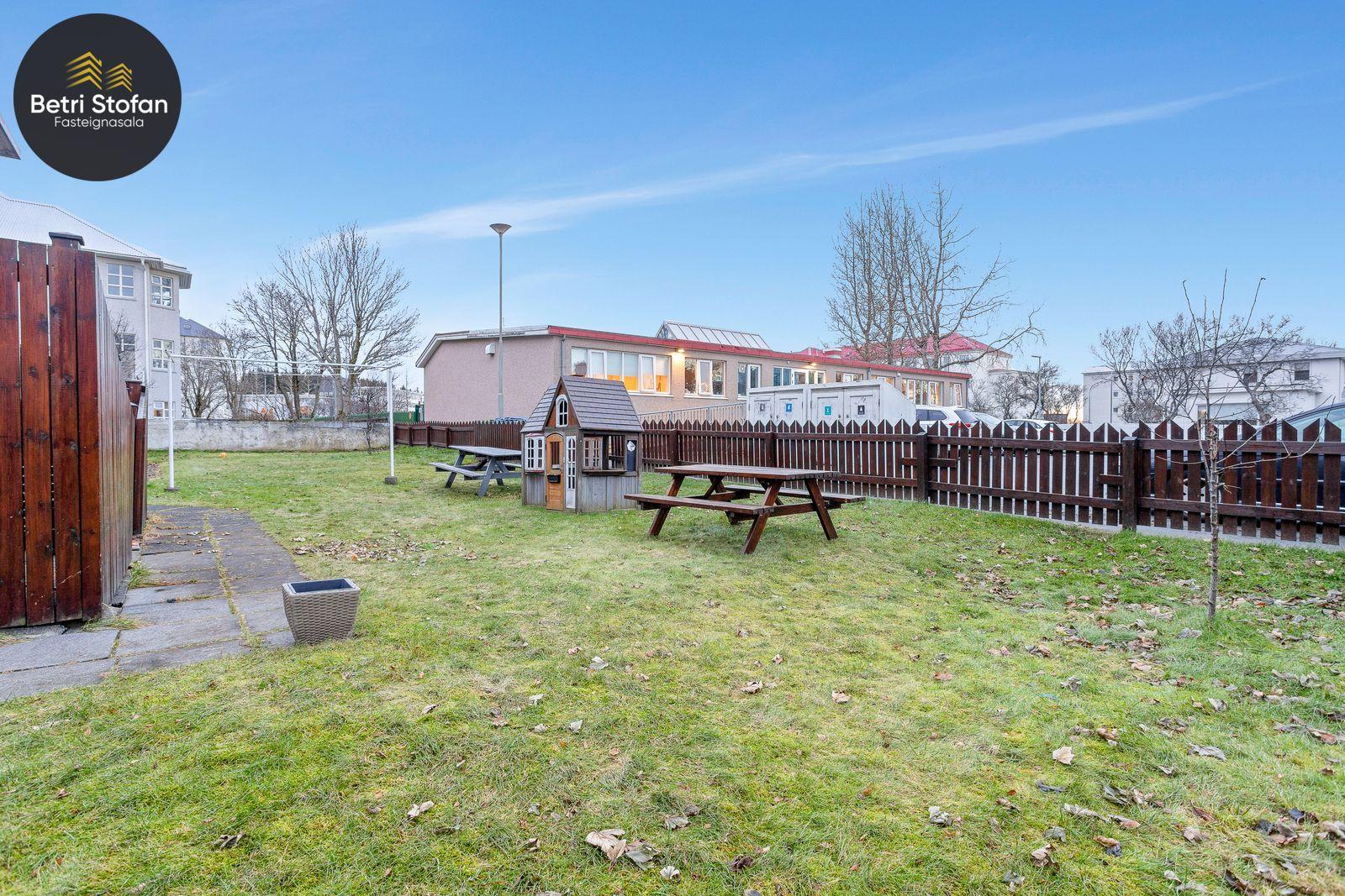 Nánari lýsing: Anddyri: Inngangur á hlið hússins, flísalagt sameiginlegt rými. Anddyri / hol með parketi á gólfi og fatahengi. Stofa: Rúmgóð og fín með parketi á gólfi. Eldhús: Hvít snyrtileg innrétting, flísar á gólfi, innaf eldhúsi er búr. Úr eldhúsi er útgengt á stóra afgirta sér verönd. Svefnherbergi: Tvö sérstaklega rúmgóð og fín herbergi, bæði með parketi á gólfi og fataskápum. Baðherbergi: Flísalagt, þar er hvít fín innrétting, vegghengt salerni og góð sturta, gluggi er á baðherberginu og gólfhiti. Sameign: Þvottahús er sameiginlegt ásamt hjóla og vagnageymslu. Sameiginleg geymsla er í risi og útigeymsla. Eigendur hafa einnig notað geymslu undir stiga. Húsið: Eigin hefur verið talsvert endurnýjuð í gegnum árin og má þar nefna ofnalagnir, skólp ofl.