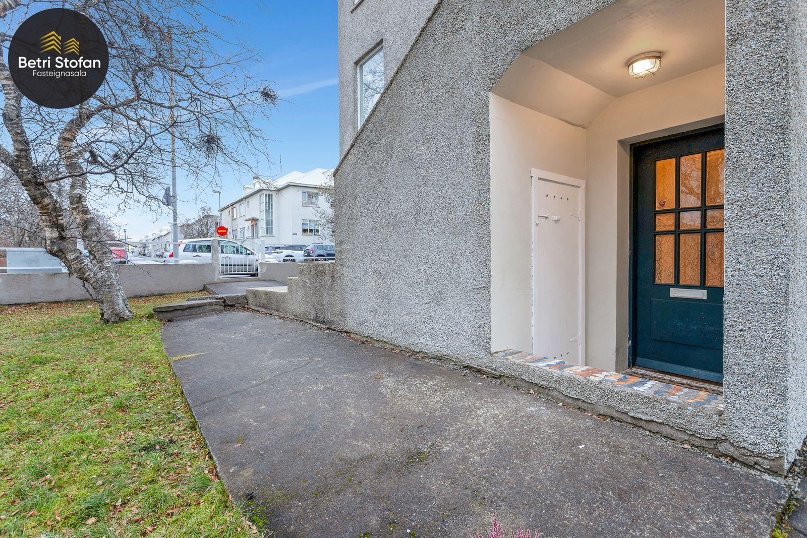 Betri Stofan fasteignasala og Atli S. Sigvarðsson fasteignasali kynna nýtt í einkasölu: Björt, falleg og sérstaklega rúmgóð þriggja herbergja íbúð á jarðhæð í litlu fjölbýli á eftirsóttum stað í Hlíðunum Reykjavík. Eignin er talsvert endurnýjuð og telur anddyri, hol, góða stofu, tvö mjög stór svefnherbergi, eldhús (með útgengi á sér verönd), búr og baðherbergi ásamt sameiginlegu þvottahúsi og sameiginlegri geymslu í risi. Eignin getur verið laus fljótlega.