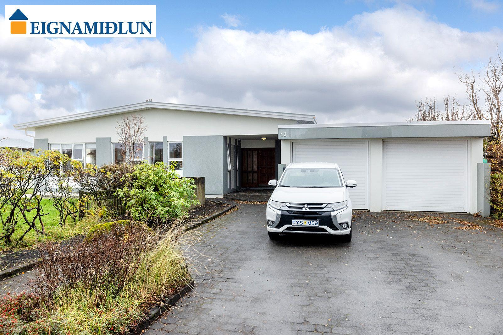 Einstaklega vel staðsett 204,5 fm einbýlishús á einni hæð sem stendur á 1.085 fm eignalóð við Lambhaga 12, 225 Garðabæ. Eignin er skráð 204,5 fermetrar, þar af er íbúðarhlutinn skráður 151 fermetrar og bílskúr 53,5 fermetrar. Eignin skiptist í forstofu, gestasalerni, rúmgott alrými, eldhús, borðstofu, sjónvarpshol, þvottahús, baðherbergi og svefnherbergisgang með fjórum svefnherbergjum. Nýlega búið að skipta um járn og pappa á þaki, ofnalagnir og parket. Falleg eign á þessum rólega stað þar sem náttúran nýtur sín til fulls.