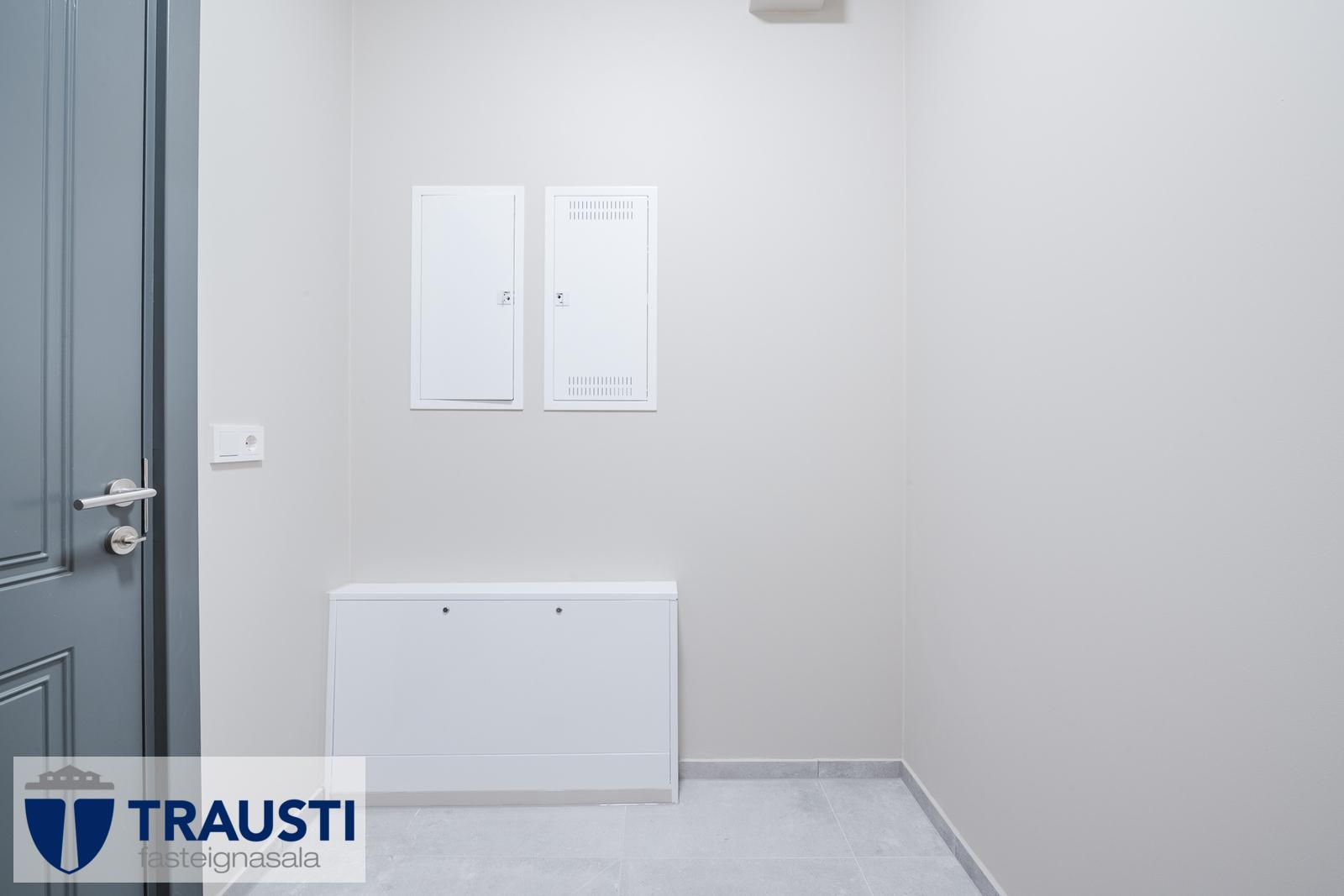 - Þvottahús og geymsla: Sér rými með flísalögðu gólfi og vegghengdum skolvaski.