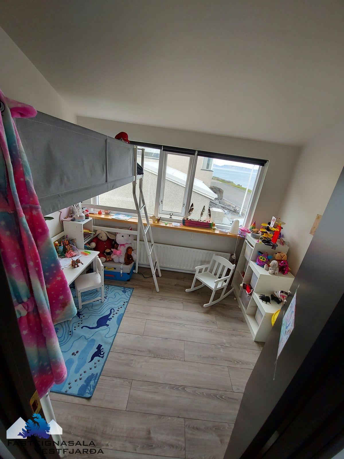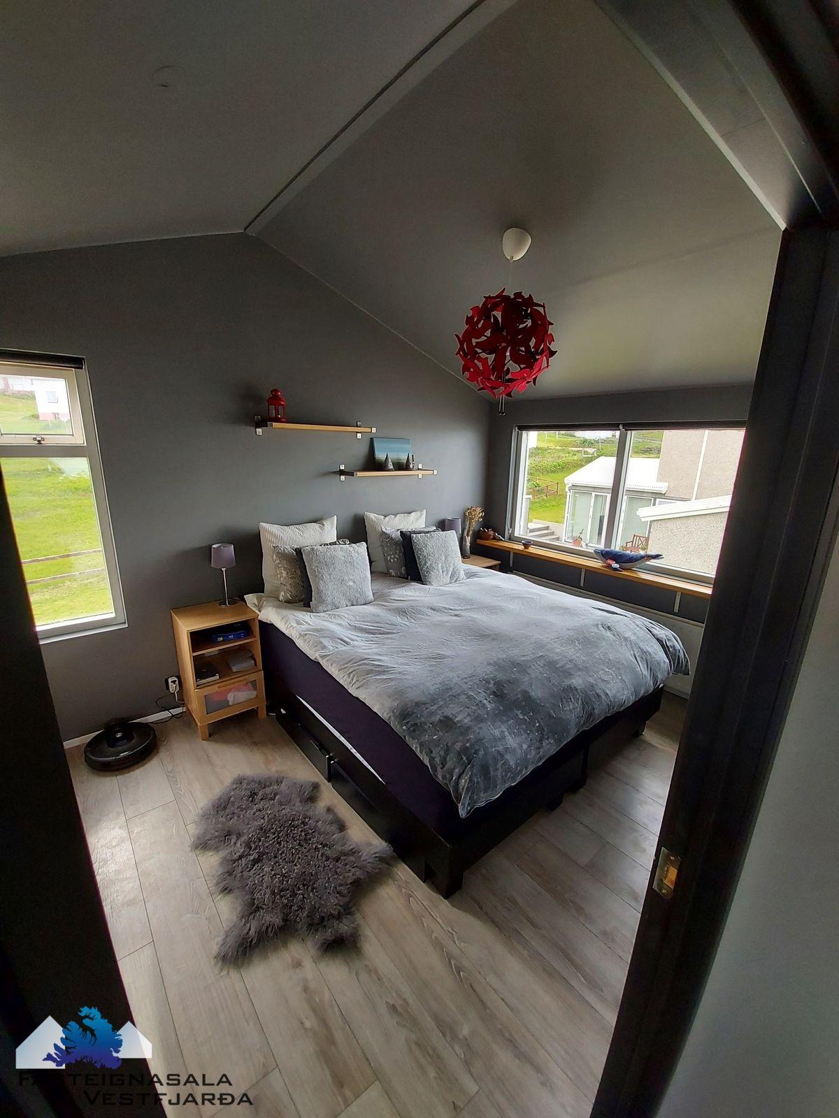 Þrjú svefnherbergi á hæðinni. Hjónaherbergi með góðu skápaplássi, harðparket á gólfi.