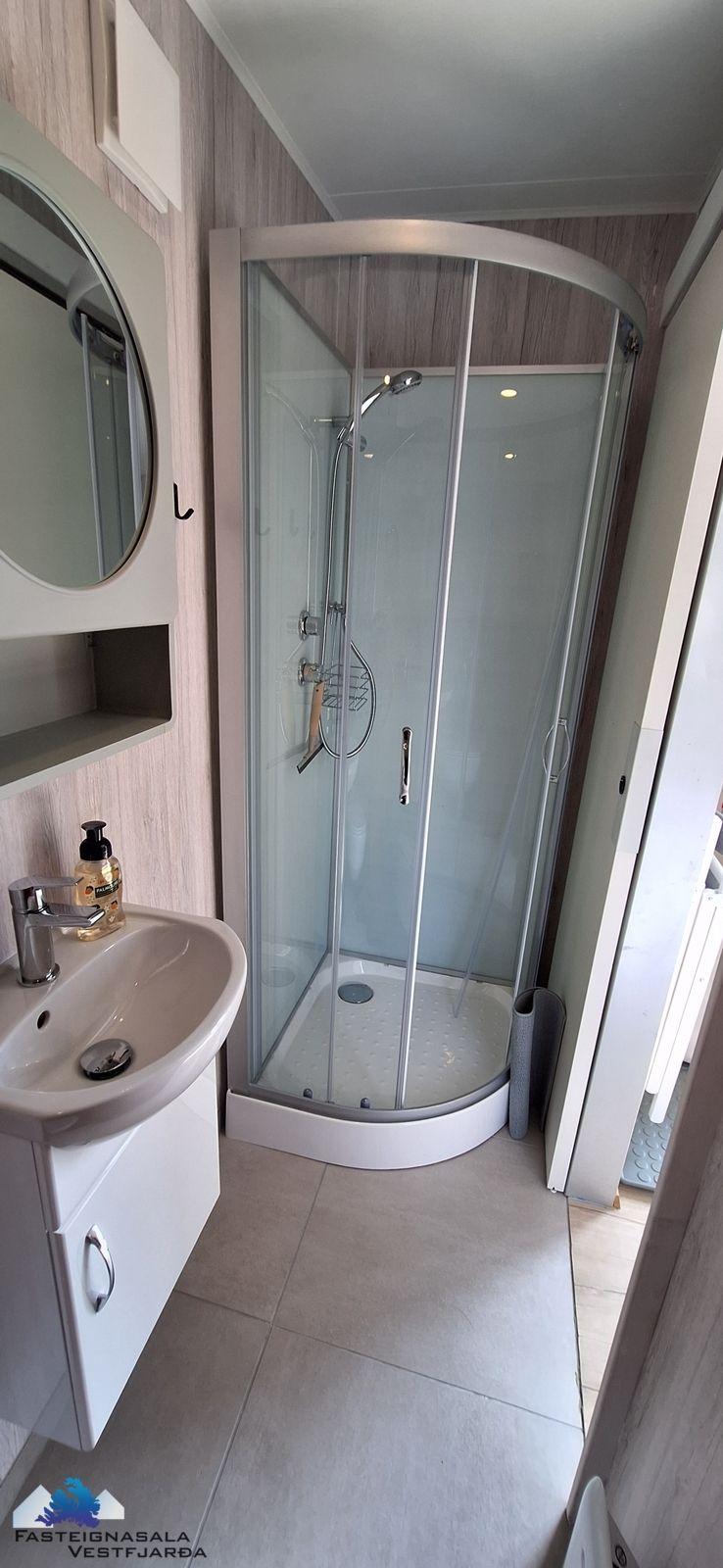 Góður 30,9 m² bílskúr. Innréttað garðhýsi með baði og svefnaðstöðu.Komið er inn í forstofu, flísar á gólfi, fataskápur og fatahengi.