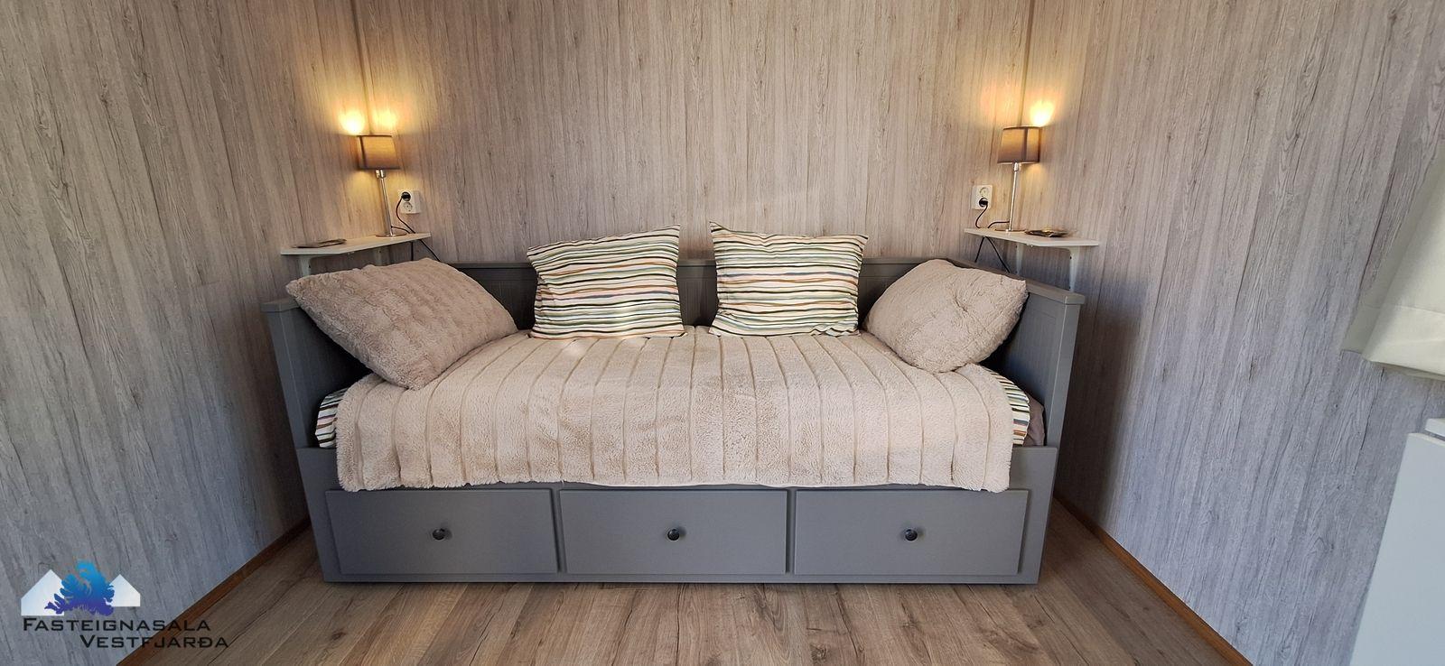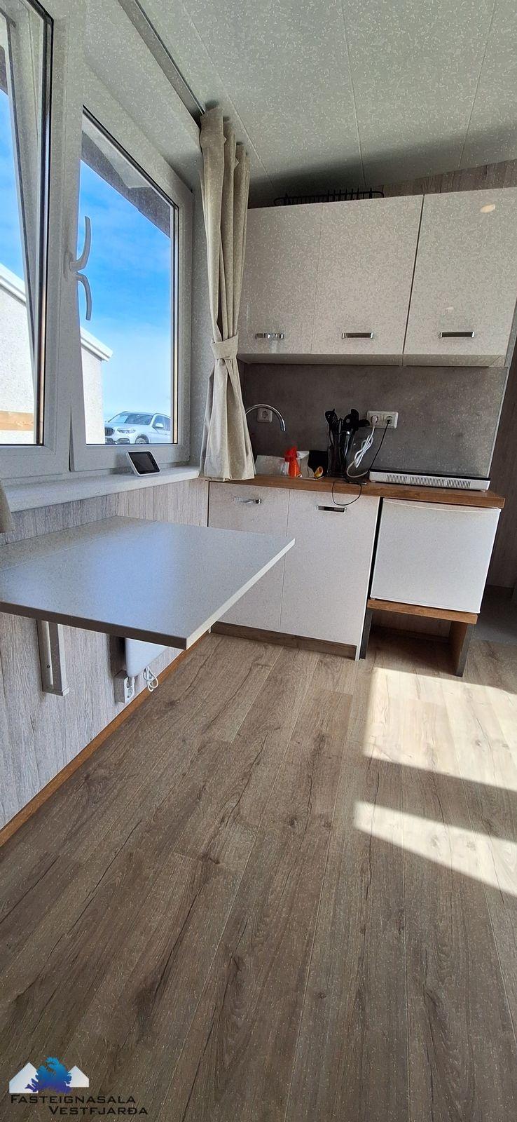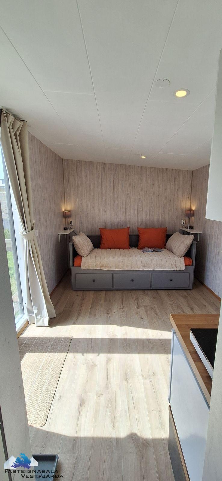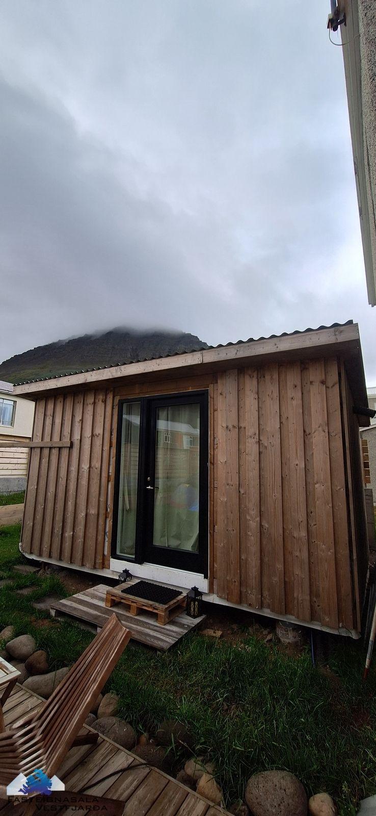 Innréttað smáhýsi í bakgarði, svefnaðstaða, baðherbergi með salerni og sturtu, eldhúsaðstaða, rafmagn.