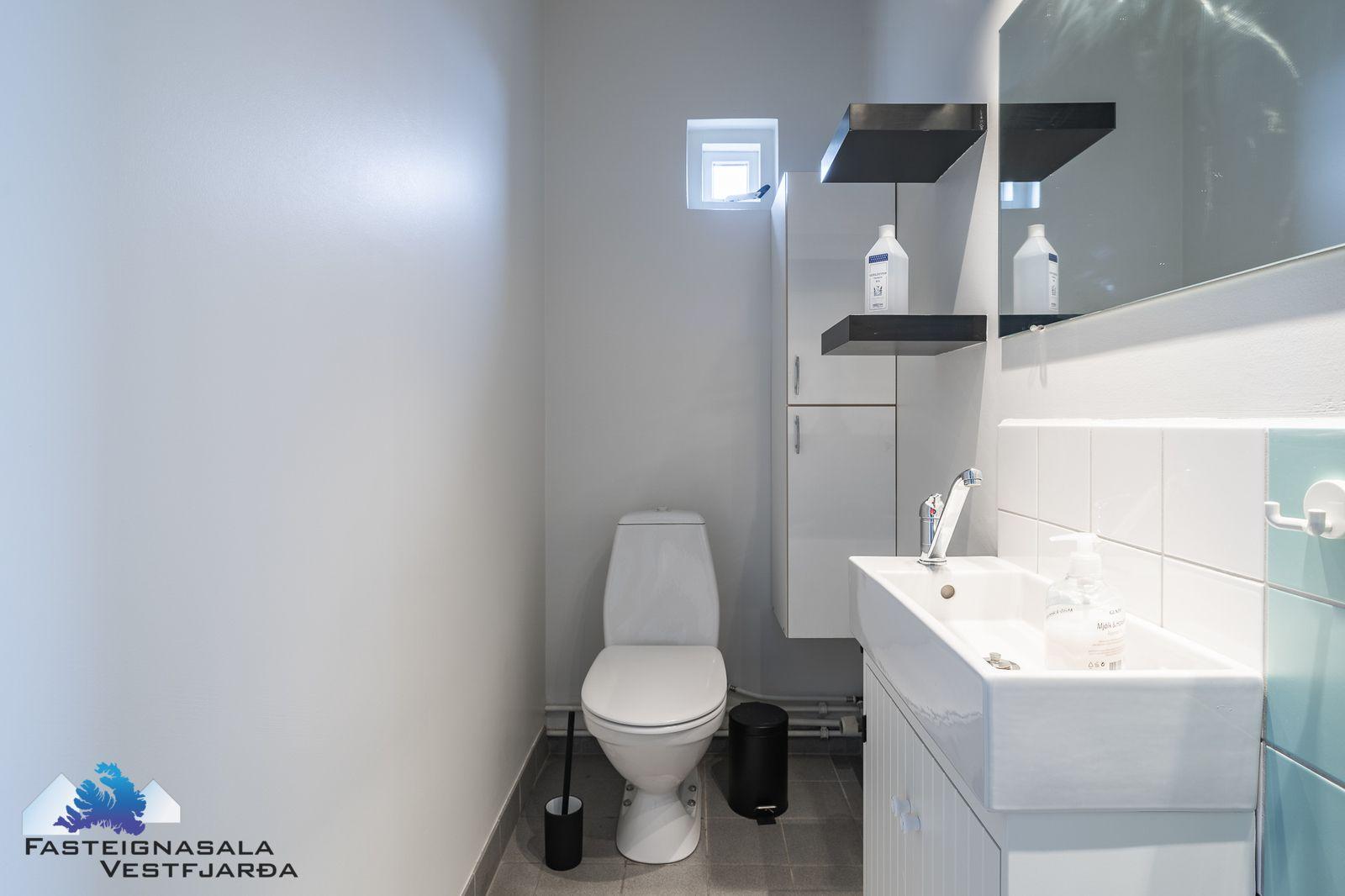 Á jarðhæð er forstofa, herbergi, stofa og borðstofa, eldhús, salerni og þvottahús.