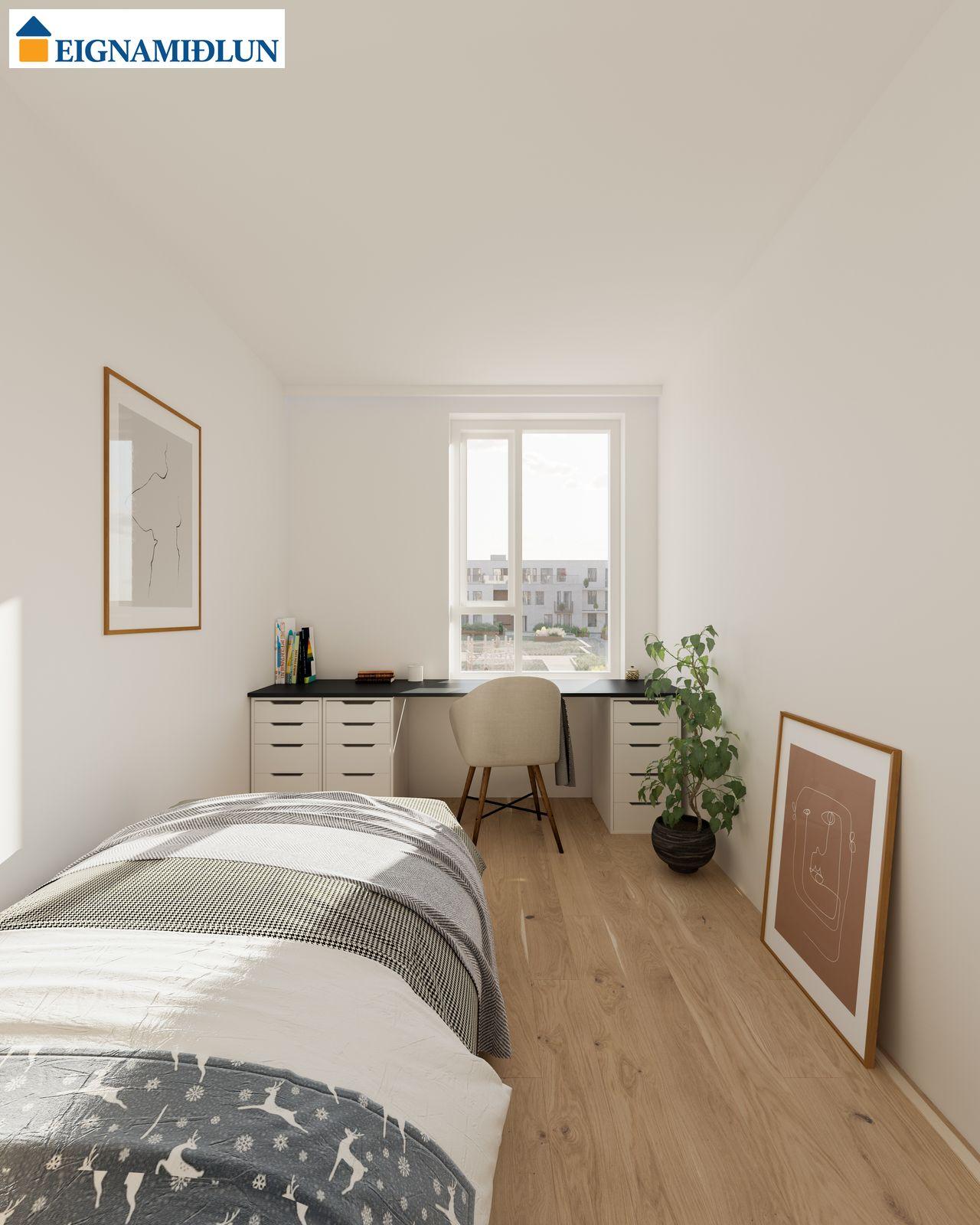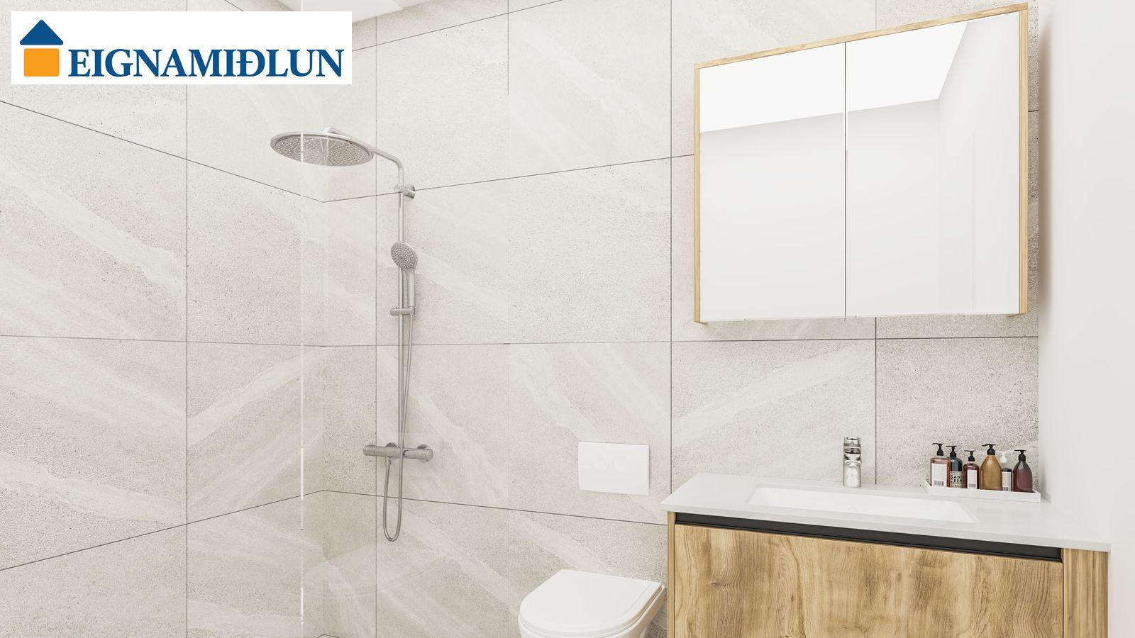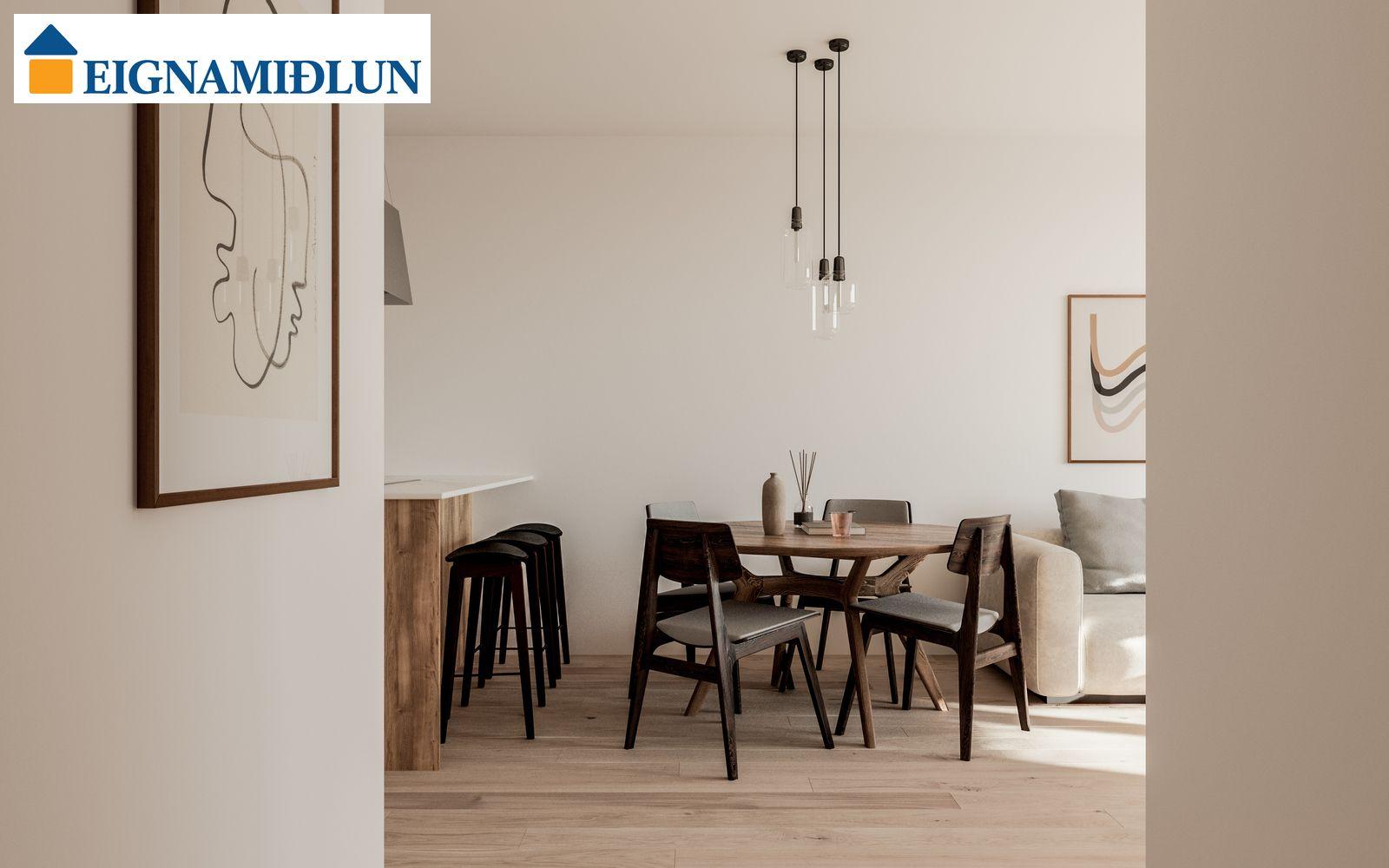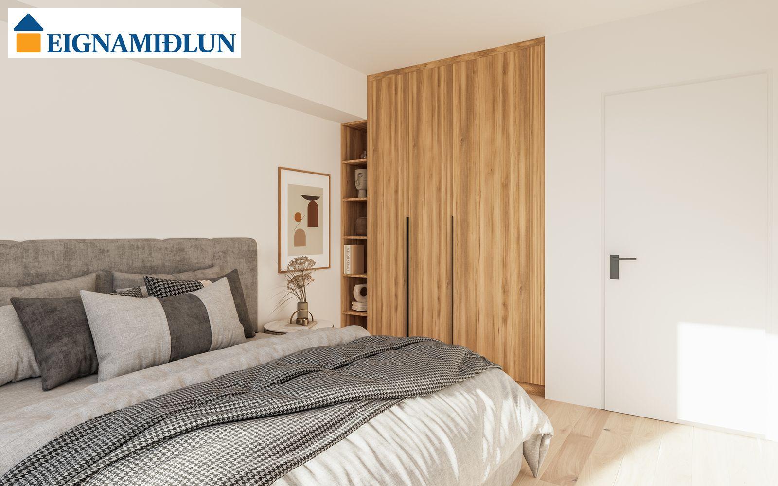 INNRÉTTINGAR: Eldhúsinnréttingar eru sérsmíðaðar frá Selós. Skápar eru úr vönduðu stitsterku melamin efni. Vönduð heimilistæki eru í íbúðum sem eru frá AEG. Kæli-/frystiskápur og uppþvottavél eru innbyggð í innréttinguna og spanhelluborð. Dekton – Rem steinborðplötur eru í öllum eldhúsum og Silestone – Nolita steinborðplötur eru á böðum. Gólfhiti er í gólfi baðherbergis auk handklæðaofns. Bílastæði í kjallara fylgja öllum íbúðum og möguleiki er á að kaupa viðbótarstæði.