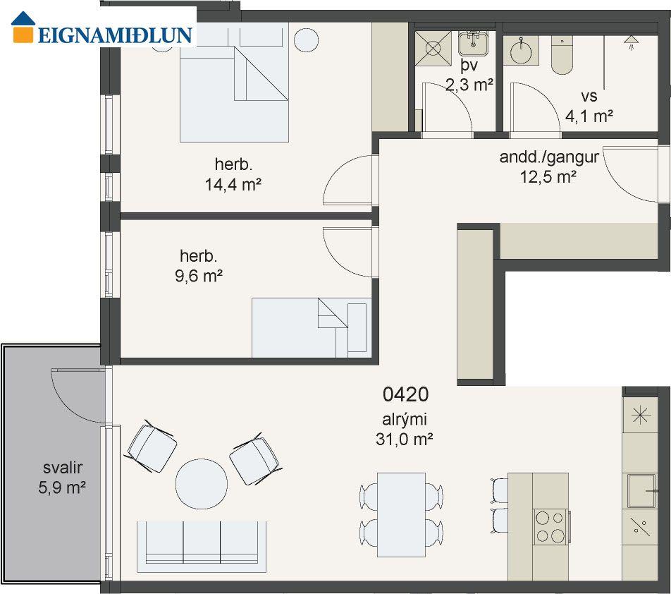 DIGRANES: Álftröð 3, íbúð 04-20, 200 Kópavogi. Mjög vönduð 90.8 fm 3 herbergja íbúð í nýju glæsilegu lyftuhúsi. Sérgeymsla í sameign og sérmerkt stæði í bílageymslu fylgir öllum íbúðum og möguleiki er að kaupa aukastæði í bílageymslu. HEIMASÍÐA SMELLIÐ HÉRBÓKAÐU SKOÐUN HJÁ DAÐA Í SÍMA 824-9096, HILMARI Í SÍMA 824-9098 EÐA ÞÓRARNI Í SÍMA 899-1882.SJÁ NÁNAR UM EIGNINA Í SKILALÝSINGU. SMELLTU HÉR FYRIR SÖLUYFIRLIT Athugið innimyndir eru úr annarri íbúð í verkefninu og eru einvörðungu til glöggvunar um útlit innréttinga og baðherbergi /þvottahús.ALMENNT UM EIGNIRNAR: Á lóðinni Álftröð 1 í Kópavogi er JÁVERK ehf að byggja fjölbýlishús með 180 glæsilegum og vel skipulögðum íbúðum sem verða Svansvottaðar. Íbúðirnar eru afhentar fullbúnar án gólfefna með vönduðum innréttingum frá Selós, steinn á borðum. Flísalögð baðherbergi og þvottahús (þar sem þau eru sér) með Limestone MGM, 60x60 cm flísum frá Ebson bæði gólf og veggir að hluta. Hefðbundið ofnakerfi og ofnar eru í íbúðinni og jafnvægisstillt loftræsikerfi með varmaendurvinnslu er í hverri íbúð. Hefðbundið útsogskerfi er í geymslum.