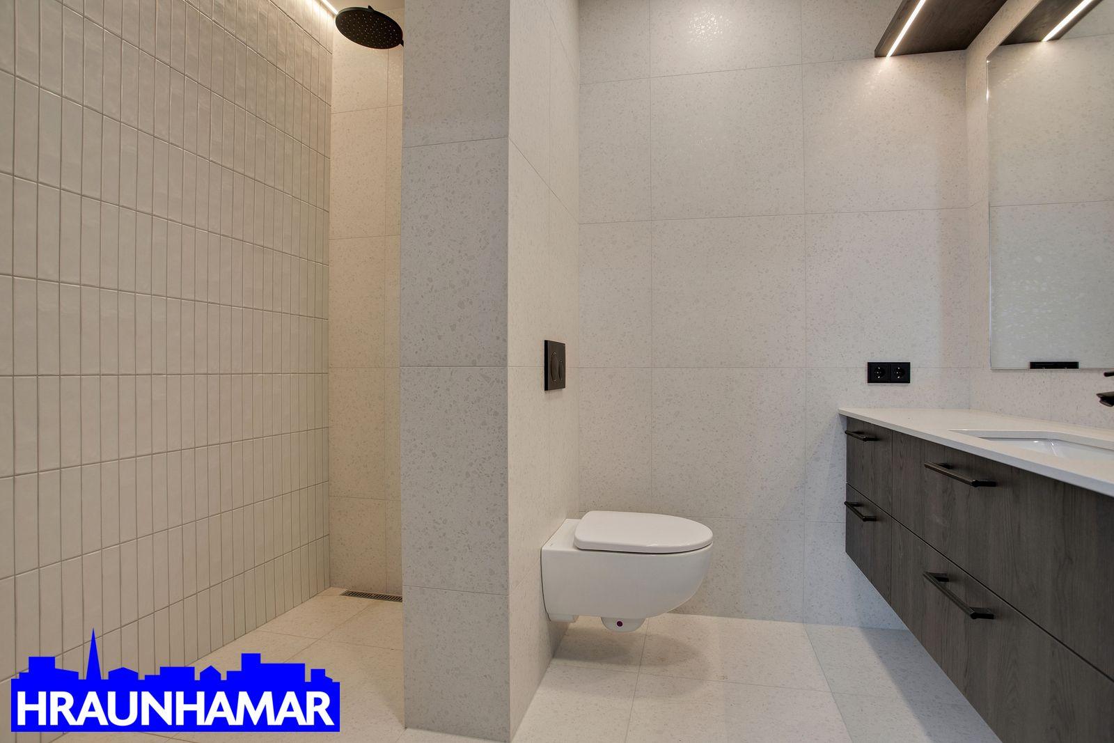- Borðplötur í eldhúsi verða úr Virgo Quartz steini frá S. Helgasyni.