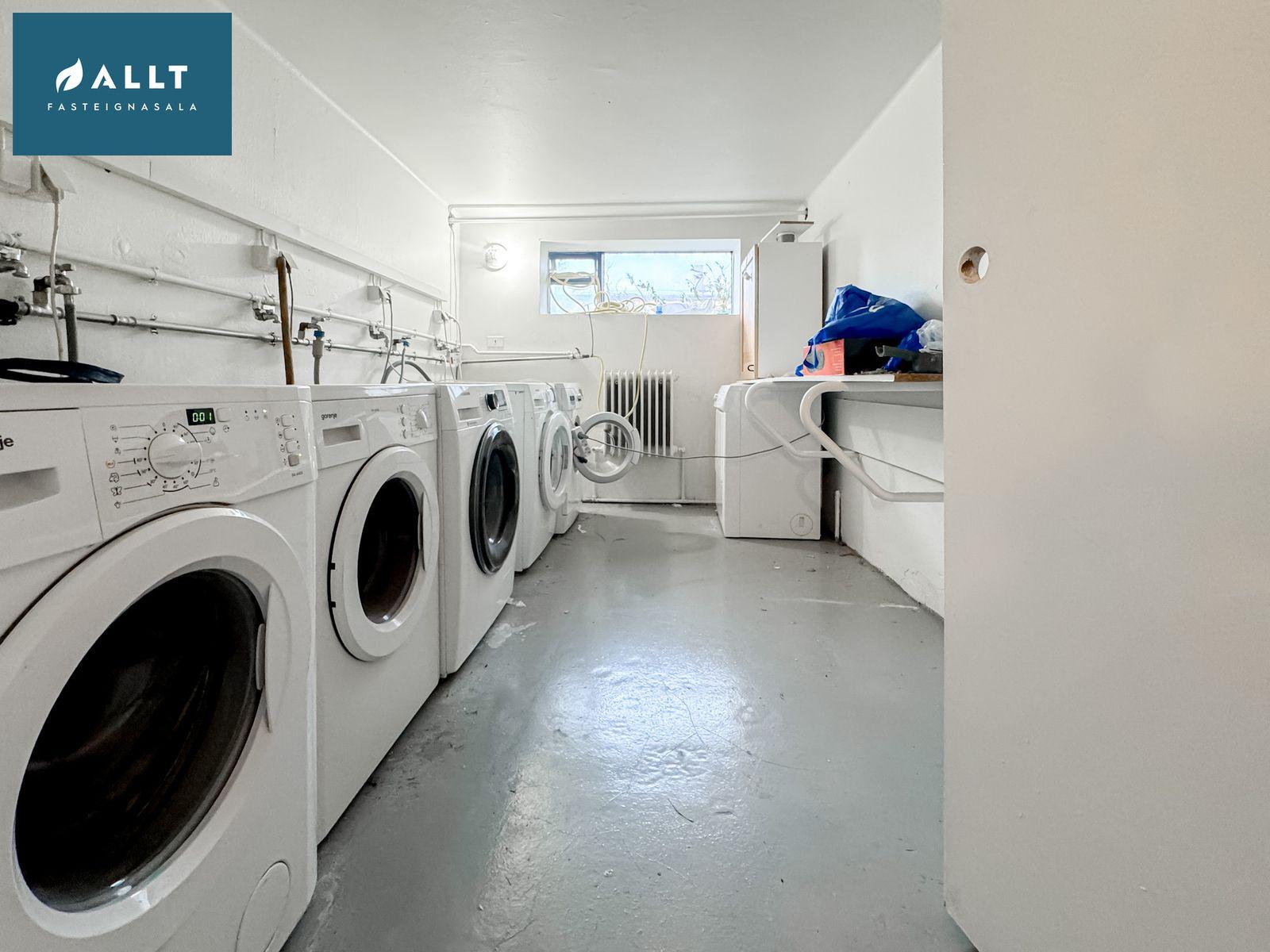 Herbergi á neðri hæð er afar rúmgott og 13,5 fermetrar sem eru ekki inní heilar fm tölu. Þaðan er gengið út í sameiginlegt þvottahús.