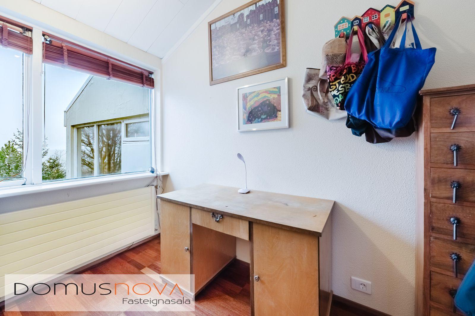 Við enda herbergjagangs er stigi niður í stórt alrými, sem notað er sem unglinga herbergi í dag