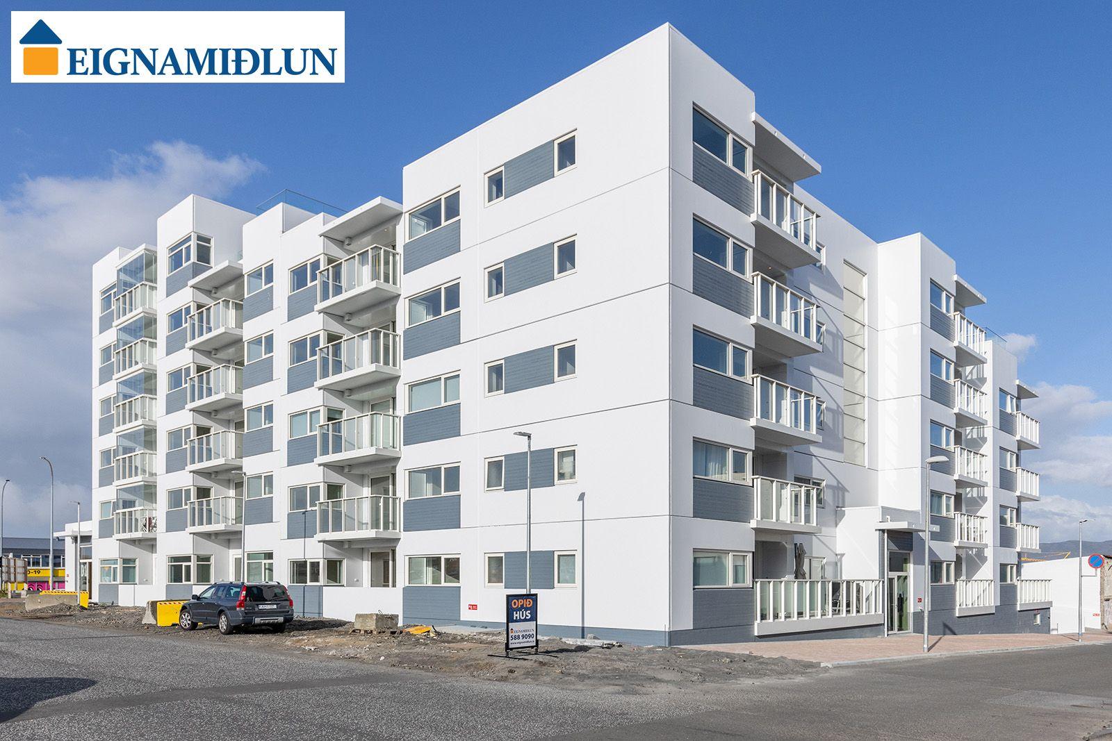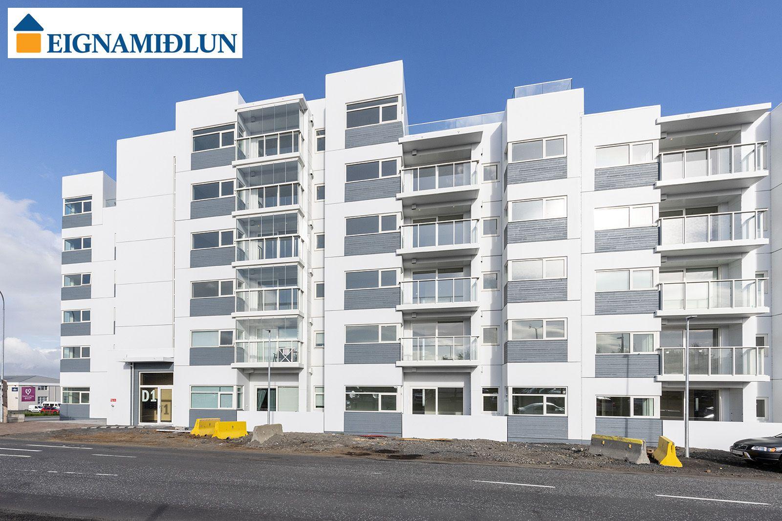 Eignamiðlun auglýsir 2ja - 5 herbergja íbúðir í nýbyggingu við Arkarvog 1, 104 Reykjavík. Um er að ræða 51 íbúð, stærðir frá 62,8 fm - 141,9 fm. Allar íbúðir með bílastæði í lokuðu bílastæðahúsi. Afhending íbúða við kaupsamning.Íbúð merkt 403 - Þriggja herbergja 80,2 fm íbúð á fjórðu hæð með tveim svefnherbergjum og rúmgóðum svölum. Rúmgott svefnherbergi og eitt minna barnaherbergi, baðherbergi, eldhús opið inn í borðstofu og stofu. Bílastæði í bílakjallara. Fallegt útsýni af svölum.
