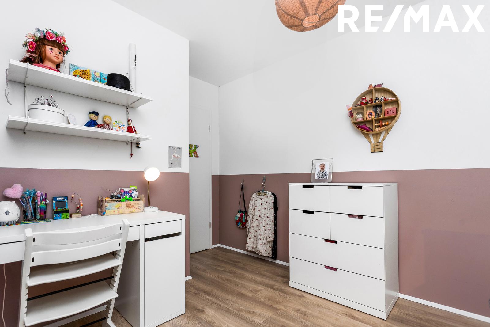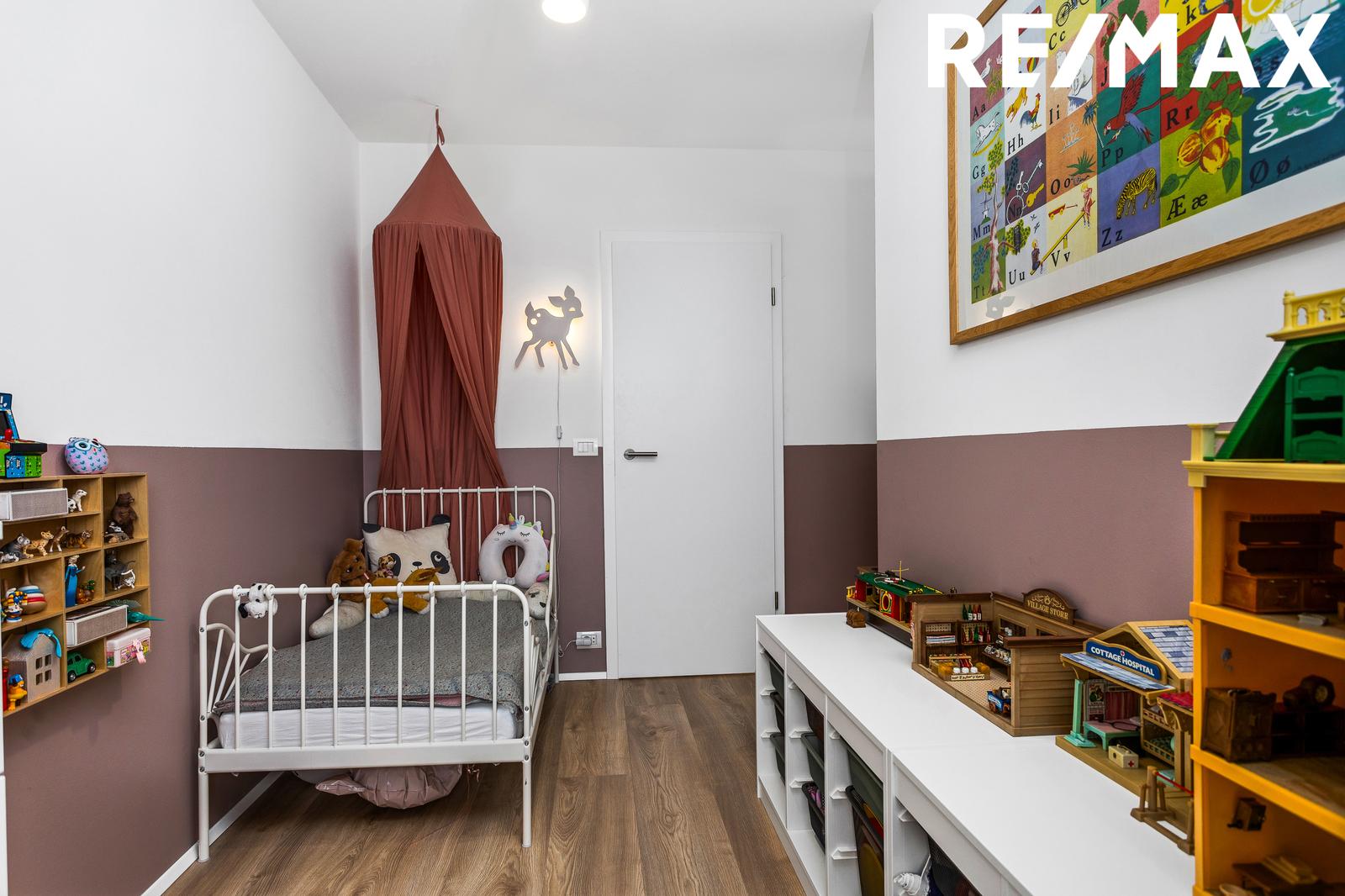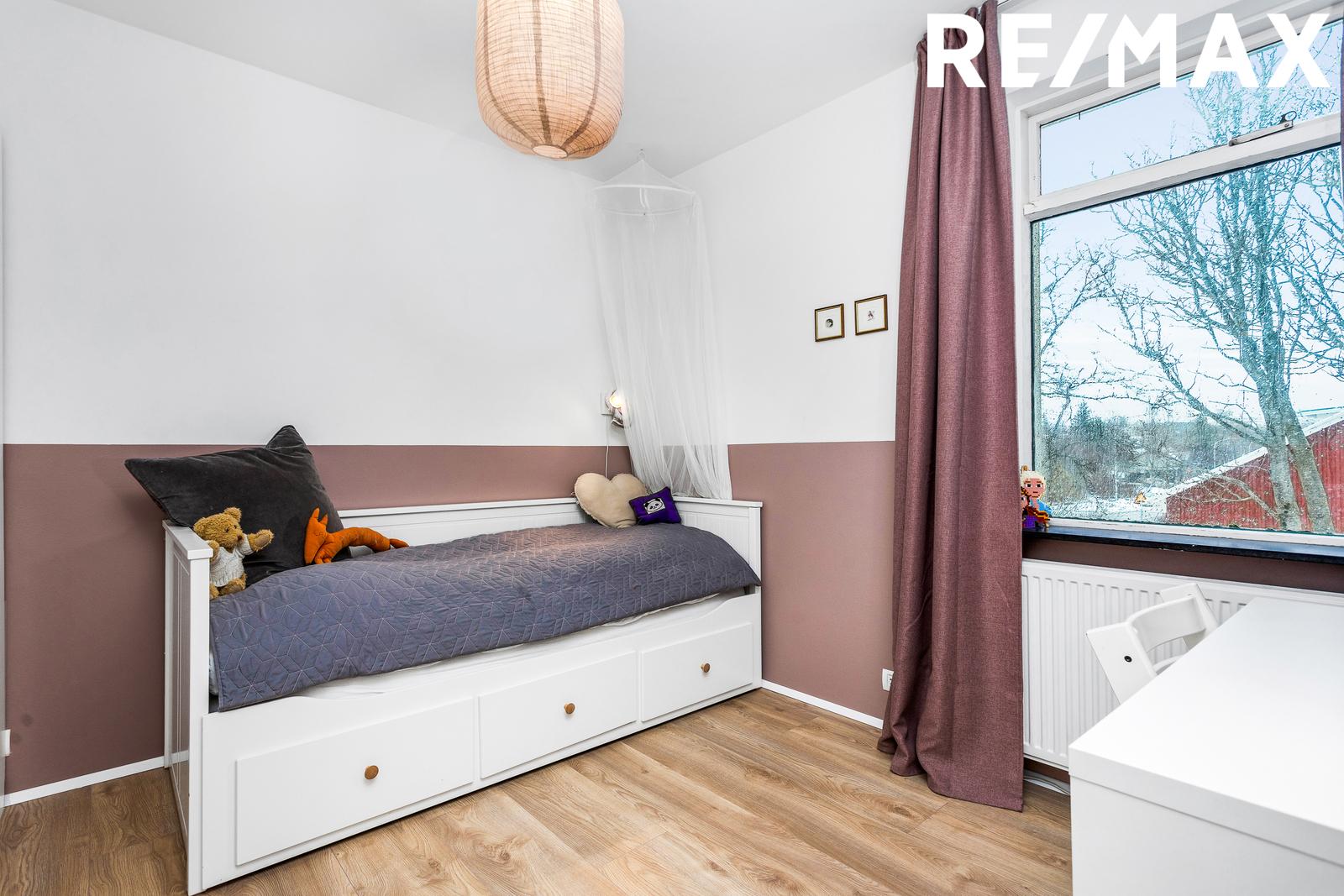 Herbergi I er annað barnaherbergjanna og vísar gluggi á því herbergi út að svölum. Parket á gólfi