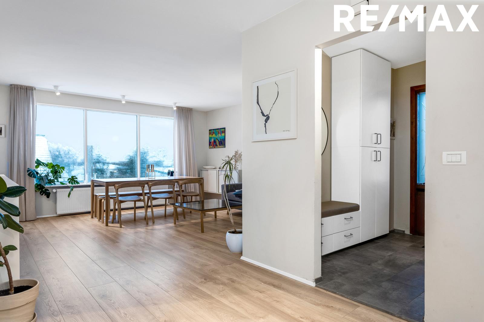 Eignin skiptist í forstofu, stofu, eldhús, þrjú herbergi, baðherbergi, þvottahús, geymslu og bílskúr. Eignin er skráð hjá Húsnæðis- og mannvirkjastofnun 136,6 m2.**HÉR MÁ NÁLGAST 3D MYNDBAND AF EIGNINNI, INNI- OG ÚTI. KÍKTU Í HEIMSÓKN! Nánari lýsing:Forstofa er inn af nýviðgerðum útidyratröppum með snjóbræðslu (rafmagn). Innan íbúðar er komið inn á flísalagt gólf með ljósgráum gólfflísum. Hvítir skápar ná upp í loft og skúffur undir bólstruðum bekk. Inn af forstofu er þvottahús og geymsla.